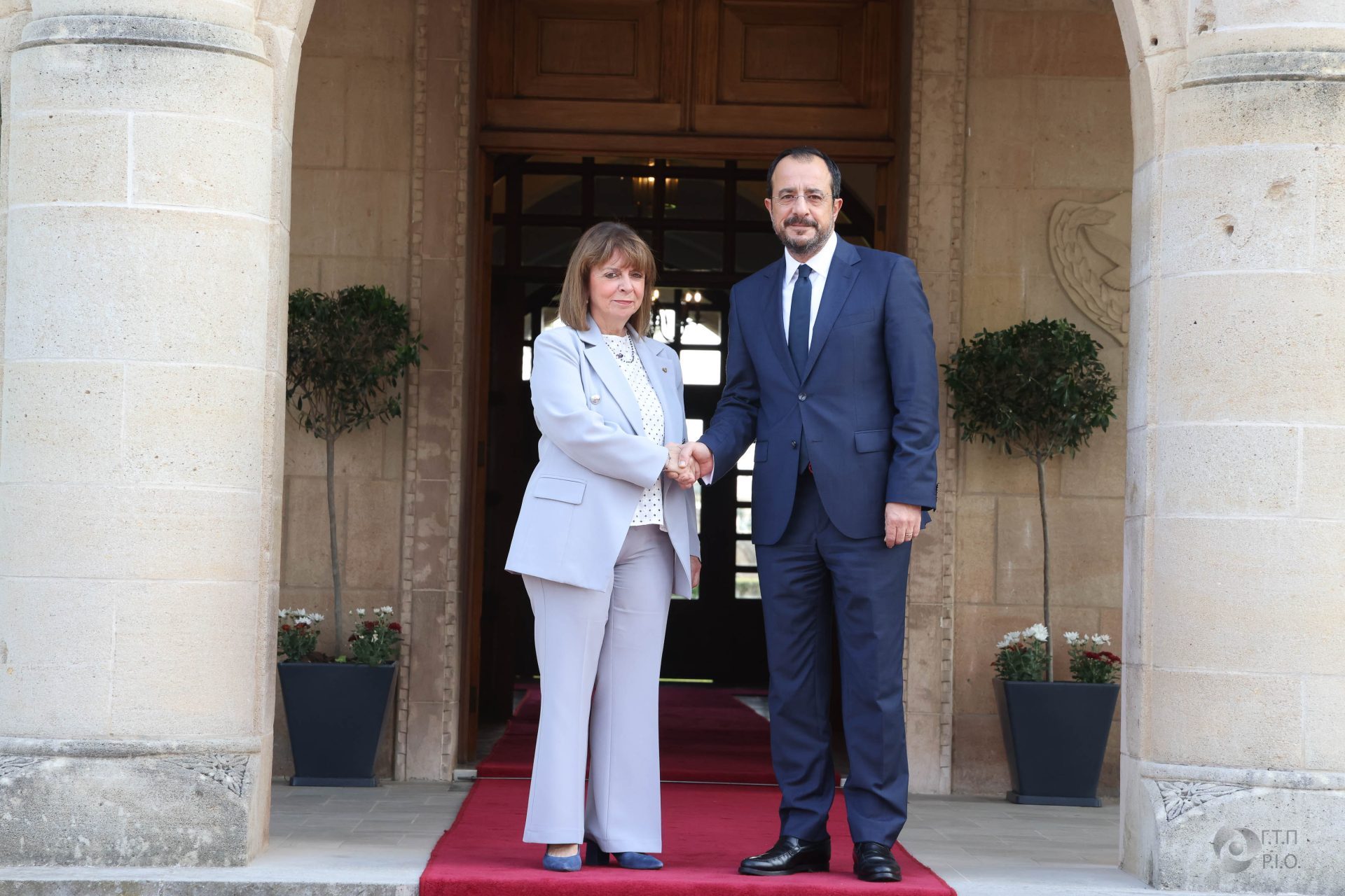 Κατά την κοινή συνέντευξη Τύπου, η κ. Σακελλαροπούλου τόνισε ότι η Ελλάδα βρίσκεται πάντα στο πλευρό της Κυπριακής Δημοκρατίας και πρόσθεσε ότι «καμία δοκιμασία, πρόκληση ή απειλή δεν πρόκειται να μας κάμψει. Αντίθετα θα ενισχύσει ακόμη περισσότερο τη διαρκή συνεργασία και τον συντονισμό των θέσεων και δράσεών μας».