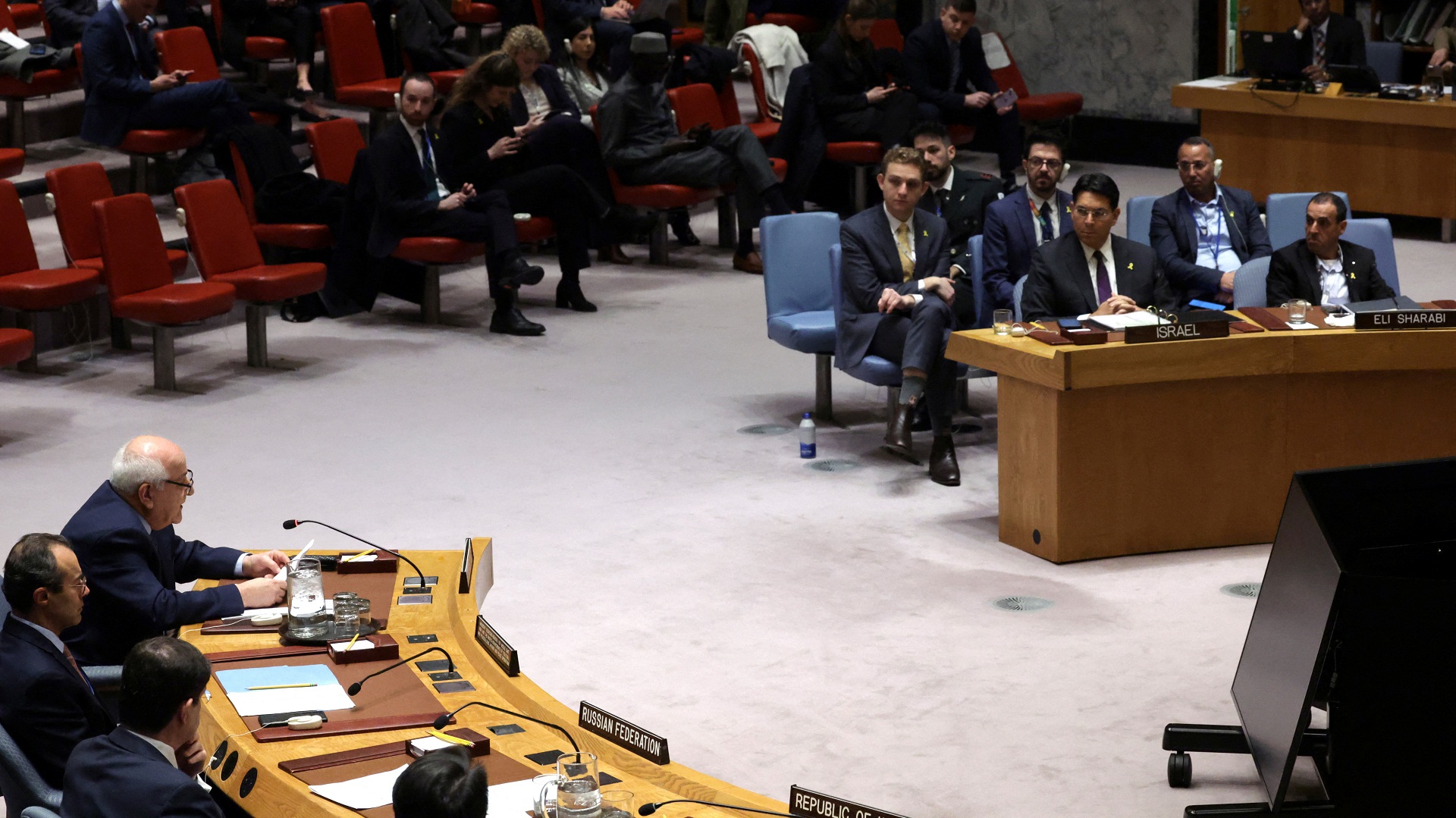 Κατά την έναρξη της συνεδρίασης, το Συμβούλιο Ασφαλείας ενημερώθηκε από τον απελευθερωμένο επιζώντα όμηρο Ελι Σαράμπι.