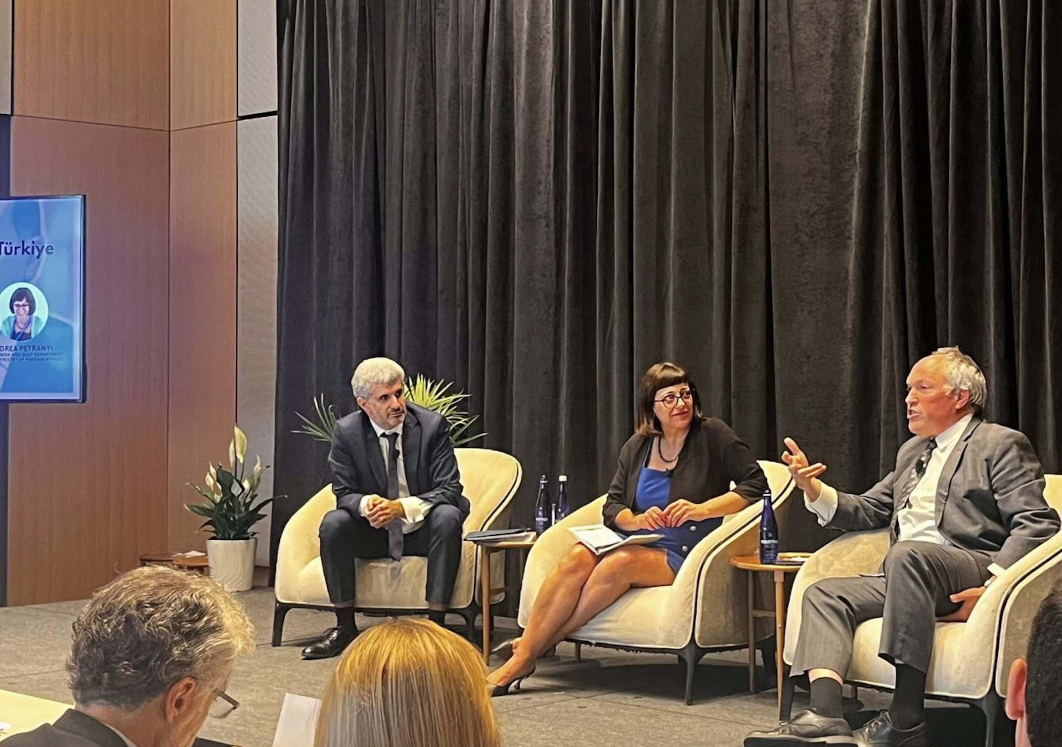 Η συζήτηση στράφηκε στη συνέχεια στον αναβαθμισμένο ρόλο της Τουρκίας αλλά και στον ρόλο του «ταραξία» στην Ανατολική Μεσόγειο, ιδίως μέσω του δόγματος της «Γαλάζιας Πατρίδας».
