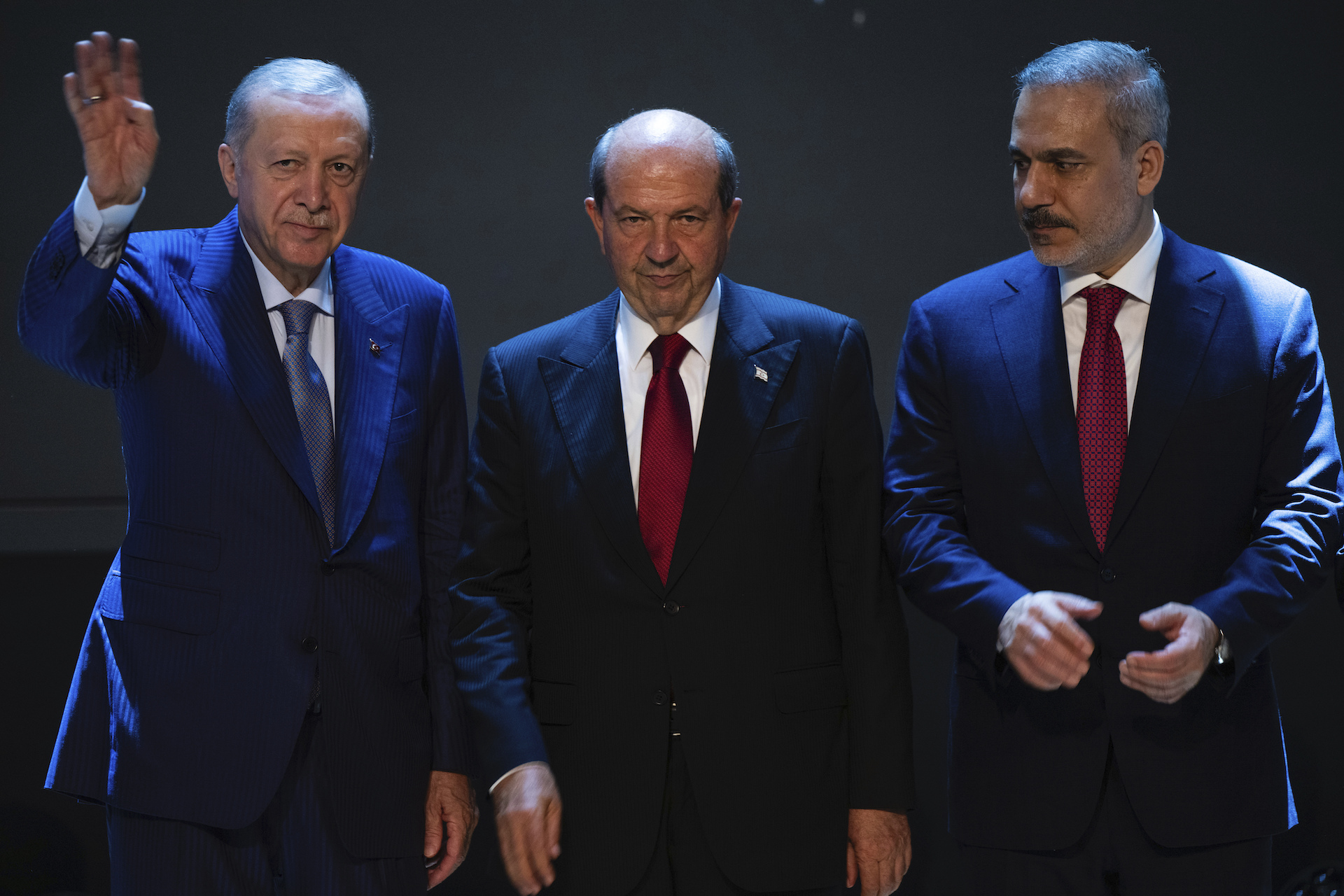 «Αν θέλει ο Θεός, σχεδιάζουμε να ολοκληρώσουμε αυτό το νέο αεροπλανοφόρο εντός δύο με τριών ετών και να συνεχίσουμε το ταξίδι μας με αυτό. Συζητήσαμε αυτό το θέμα με τον Ισπανό πρωθυπουργό Πέδρο Σάντσεθ. Λέει: “Είμαστε μέσα”. Αν θέλει ο Θεός, θα το πετύχουμε αυτό με τους Ισπανούς. Αυτήν τη στιγμή λαμβάνουμε μέτρα με το Ηνωμένο Βασίλειο και τη Γερμανία σχετικά με την αγορά μαχητικών (σ.σ. Eurofighter). Το Ηνωμένο Βασίλειο και οι Γερμανοί είναι επίσης θετικοί σε αυτό το θέμα. Αν θέλει ο Θεός, πιστεύω ότι θα αποκτήσουμε τα μαχητικά μας το συντομότερο δυνατό. Στις συναντήσεις μου με τον Βρετανό πρωθυπουργό Κιρ Στάρμερ και τον Γερμανό καγκελάριο Φρίντριχ Μερτς, παρατήρησα τη θετική τους προσέγγιση στο θέμα και, αν θέλει ο Θεός, θα κάνουμε και εμείς αυτά τα βήματα […] Δεν έχω καμία πρόθεση να επισκεφθώ τον νότο (σ.σ. της Κύπρου). Οπως ακριβώς δεν αναγνωρίζουν την ΤΔΒΚ (sic) ως κράτος, έτσι και εμείς δεν αναγνωρίζουμε τη Νότια Κύπρο (sic) ως κράτος. Επομένως, μια τέτοια συνάντηση μαζί τους δεν έχει θέση στο τεφτέρι μου […] Δεν μπορεί να αποκαλεί τους ηρωικούς γιους της Τουρκίας, που ήρθαν στο νησί της Κύπρου αποκλειστικά για την ειρήνη, “κατακτητές”. Ο τουρκοκυπριακός λαός δεν θα αμφισβητήσει καν την εγγυήτρια ιδιότητα της μητέρας πατρίδας του, της Τουρκίας, και τη νόμιμη παρουσία της στο νησί. Η ελληνοκυπριακή πλευρά έχει επανειλημμένα αποδείξει ότι δεν θέλει λύση. Δεν επιδιώκει ισότητα και δικαιοσύνη. Θέλει να κάνει τους Τουρκοκύπριους παρίες στην ίδια τους την πατρίδα. Το κλειδί για μια λύση στην Κύπρο είναι μια λύση δύο κρατών. Δεν θα υπάρξει συμβιβασμός σε αυτό».