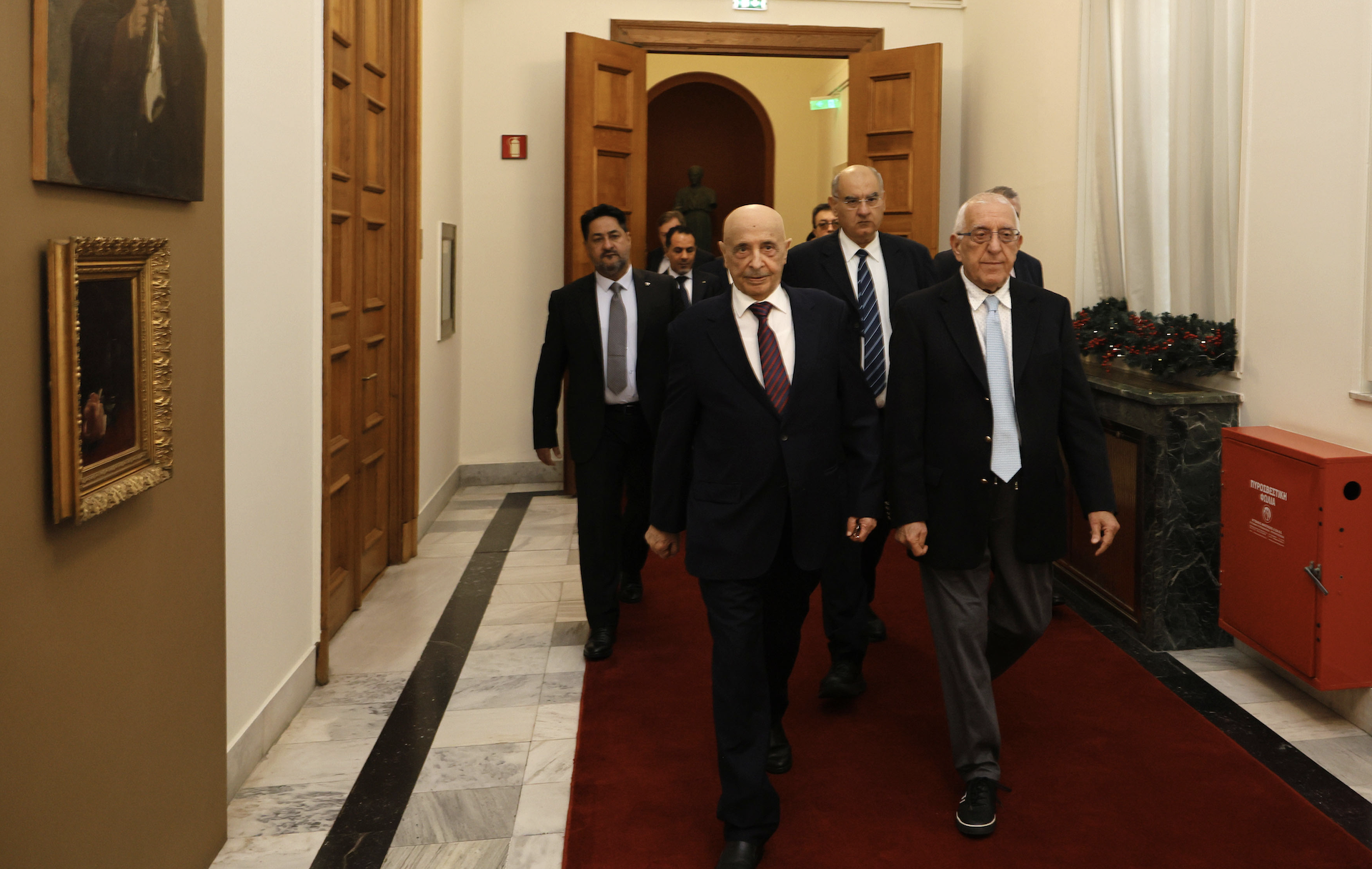 Με τον πρόεδρο της Βουλής των Αντιπροσώπων της Λιβύης, Ακίλα Σάλεχ, συναντήθηκε σήμερα στην Αθήνα, ο πρόεδρος της Βουλής των Ελλήνων, Νικήτας Κακλαμάνης.