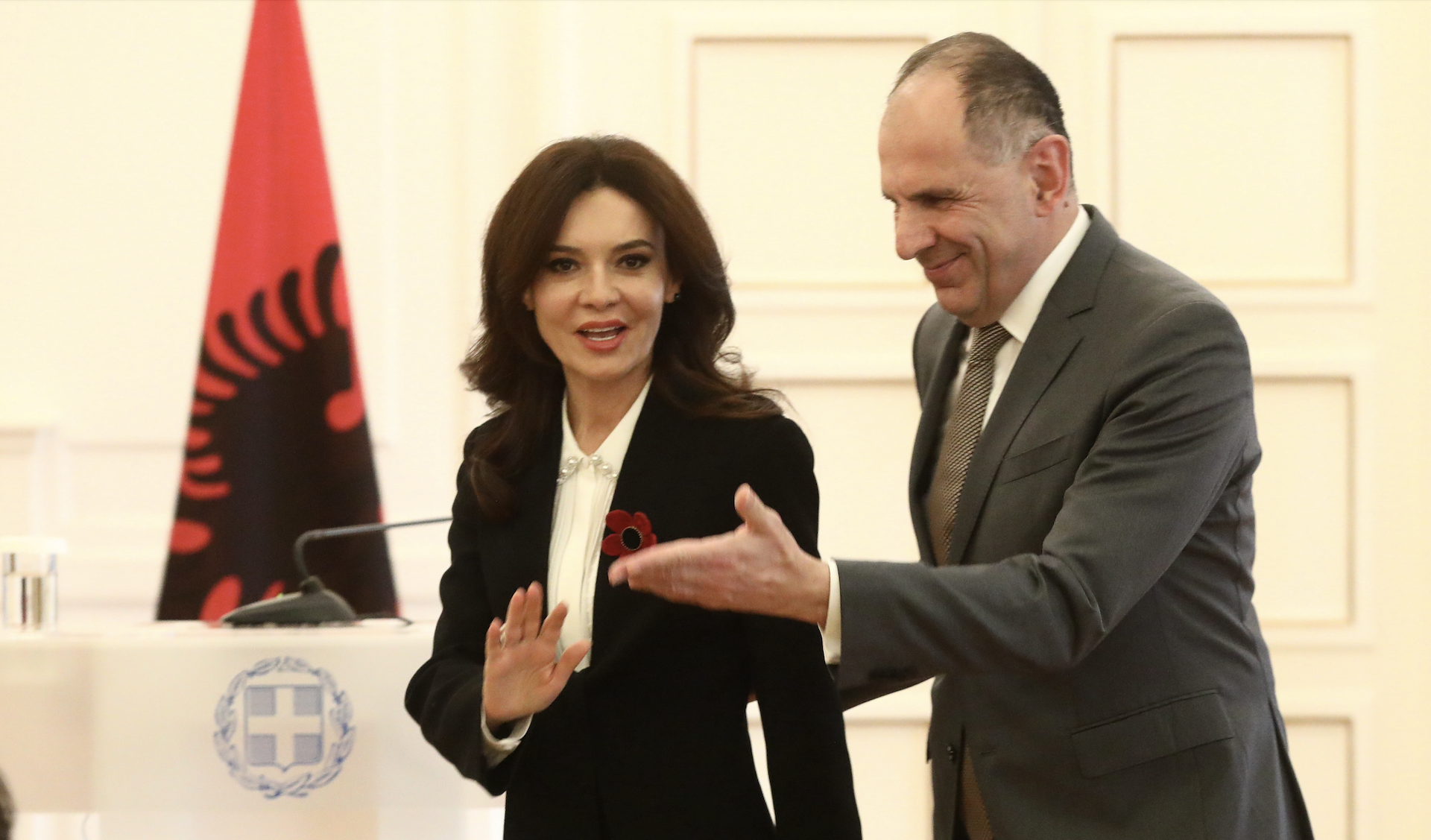 «Με την υπουργό Εξωτερικών της Αλβανίας είχαμε την ευκαιρία να ανταλλάξουμε απόψεις για θέματα περιφερειακά και διεθνούς ενδιαφέροντος, τη συνεργασία μας στο πλαίσιο του ΝΑΤΟ και του Οργανισμού Ηνωμένων Εθνών, αλλά και σε άλλους διεθνείς οργανισμούς και φόρα», δήλωσε μετά το πέρας της συνάντησης ο επικεφαλής της ελληνικής διπλωματίας.