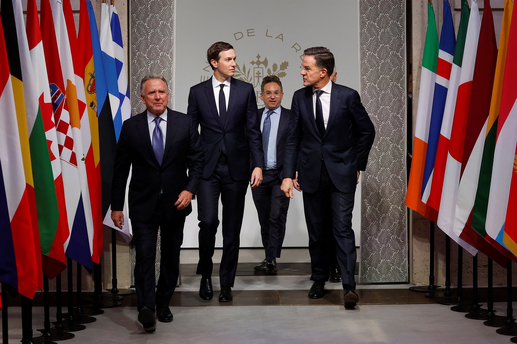 Στη χθεσινή συνάντηση στο προεδρικό μέγαρο των Ηλυσίων, συμμετείχαν 27 αρχηγοί κρατών και κυβερνήσεων από την Ευρώπη και τον Καναδά, αξιωματούχοι του ΝΑΤΟ και της Ευρωπαϊκής Ενωσης. Τις Ηνωμένες Πολιτείες εκπροσώπησαν ο ειδικός απεσταλμένος του Λευκού Οίκου Στιβ Γουίτκοφ και ο Τζάρεντ Κούσνερ, γαμπρός του προέδρου Τραμπ.