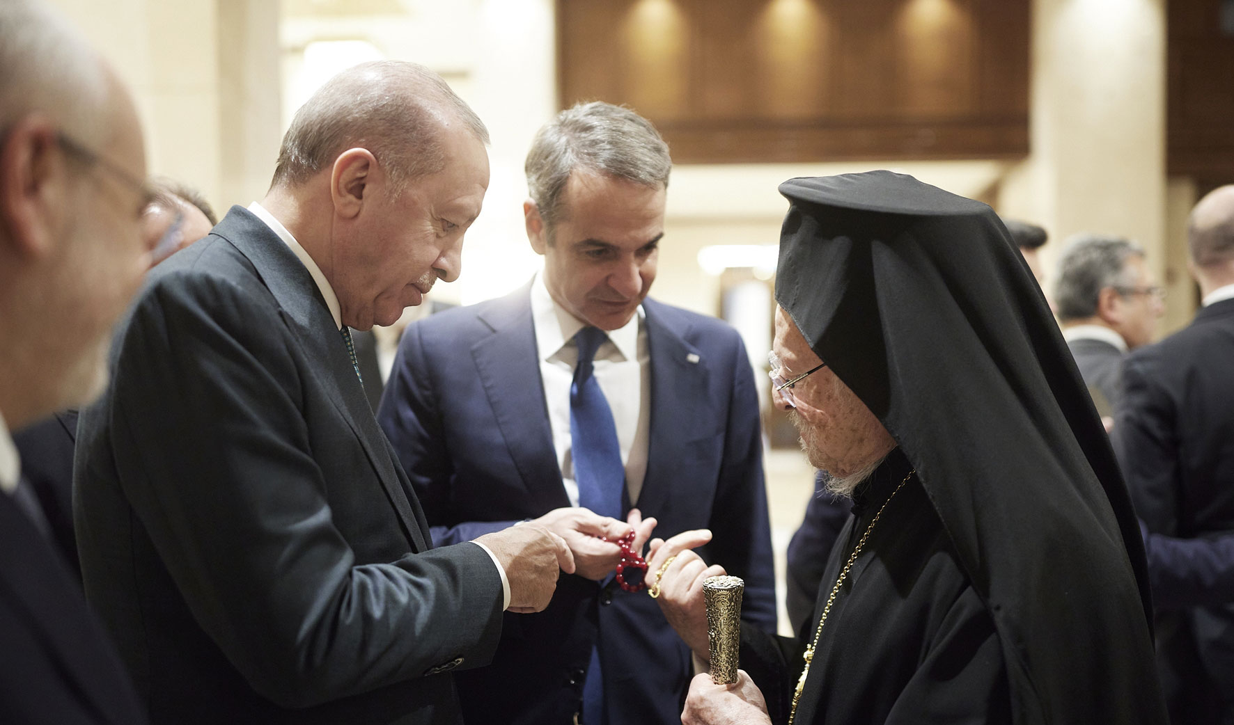 Σε μια συνάντηση μίας ώρας και 45 λεπτών, η οποία καταγράφεται κατά γενική ομολογία θετική και εποικοδομητική, τόσο ο κ. Μητσοτάκης όσο και ο κ. Ερντογάν επανέλαβαν πάγιες θέσεις, με τον πρωθυπουργό να ζητεί, μεταξύ άλλων, την άρση του casus belli και την παραπομπή σε διεθνές δικαιοδοτικό όργανο της οριοθέτησης ΑΟΖ και υφαλοκρηπίδας και την επίλυση του Κυπριακού με βάση τα ψηφίσματα του ΟΗΕ, και τον πρόεδρο της Τουρκίας να μιλάει για τουρκική μειονότητα, να ζητεί την απρόσκοπτη συμμετοχή της Αγκυρας στην ευρωπαϊκή άμυνα και να στηλιτεύει τη συνεργασία της Ελλάδας με το Ισραήλ.