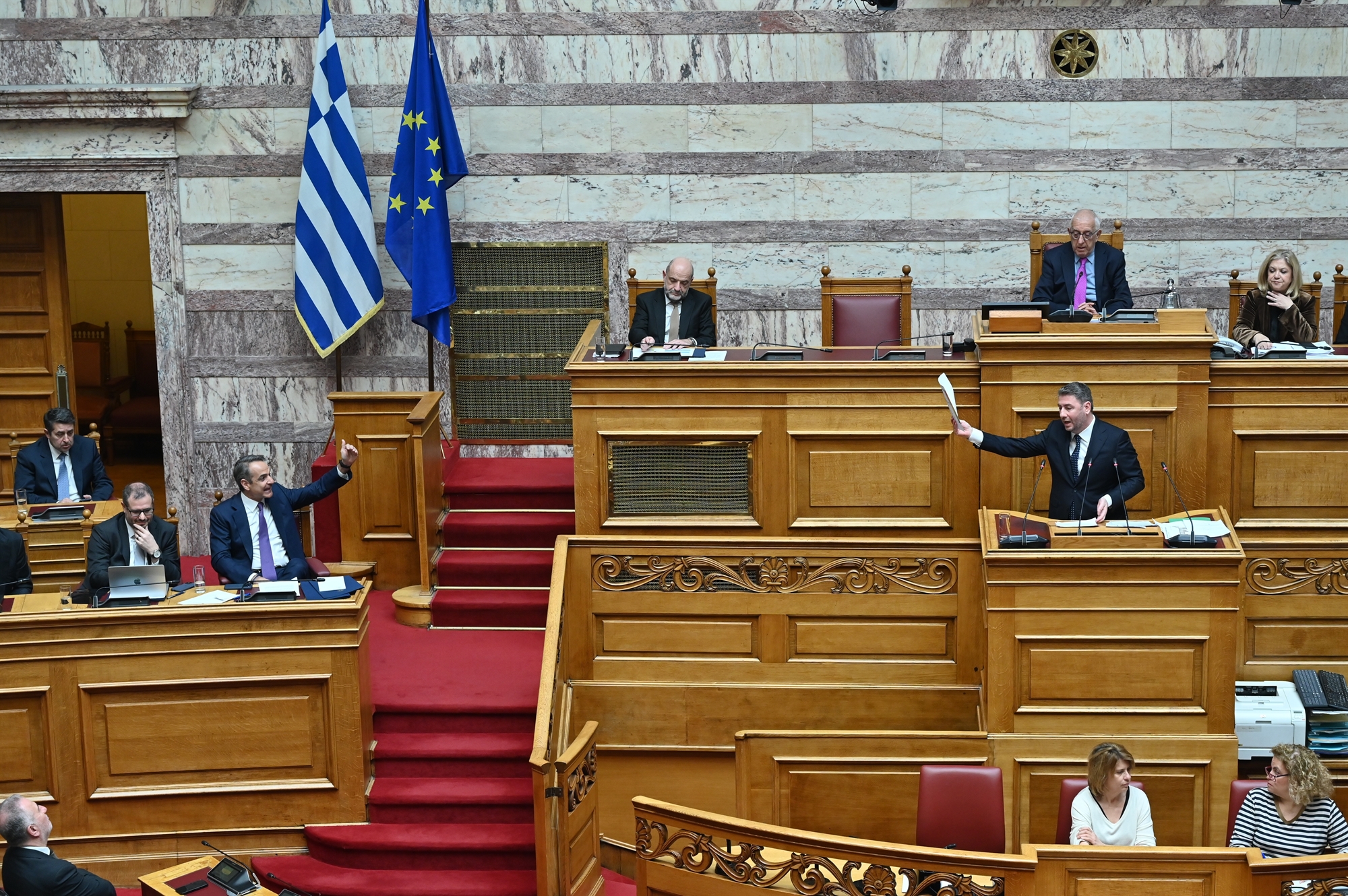 Nέο γύρο σκληρής αντιπαράθεσης με εκατέρωθεν πολύ υψηλούς τόνους μεταξύ κυβέρνησης και ΠΑΣΟΚ προκάλεσε χθες ο ορισμός της προ ημερησίας διατάξεως συζήτησης στη Βουλή για το Κράτος Δικαίου –που αναμένεται να έχει στο επίκεντρο το θέμα των υποκλοπών– στις 17 Απριλίου, δηλαδή την Παρασκευή αμέσως μετά το Πάσχα. Η ανταλλαγή δηλώσεων και ανακοινώσεων χθες ανάμεσα στην κυβέρνηση και τη Χαριλάου Τρικούπη αποτελεί το πρώτο ημίχρονο, καθώς από την πλευρά του ΠΑΣΟΚ δηλώνουν ότι θα θέσουν το θέμα στην αυριανή Διάσκεψη των Προέδρων, αφού υποστηρίζουν ότι η υπέρβαση του περιθωρίου ενός μηνός στον ορισμό της συζήτησης συνιστά «ωμή παραβίαση του Κανονισμού της Βουλής» και με βάση αυτή τη θέση θα καλέσουν τον πρόεδρο του Σώματος, Νικήτα Κακλαμάνη, να απαντήσει αν θα την αποδεχθεί και πώς σκοπεύει να αντιδράσει.