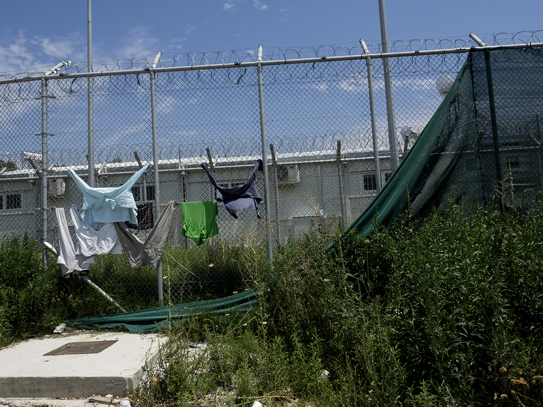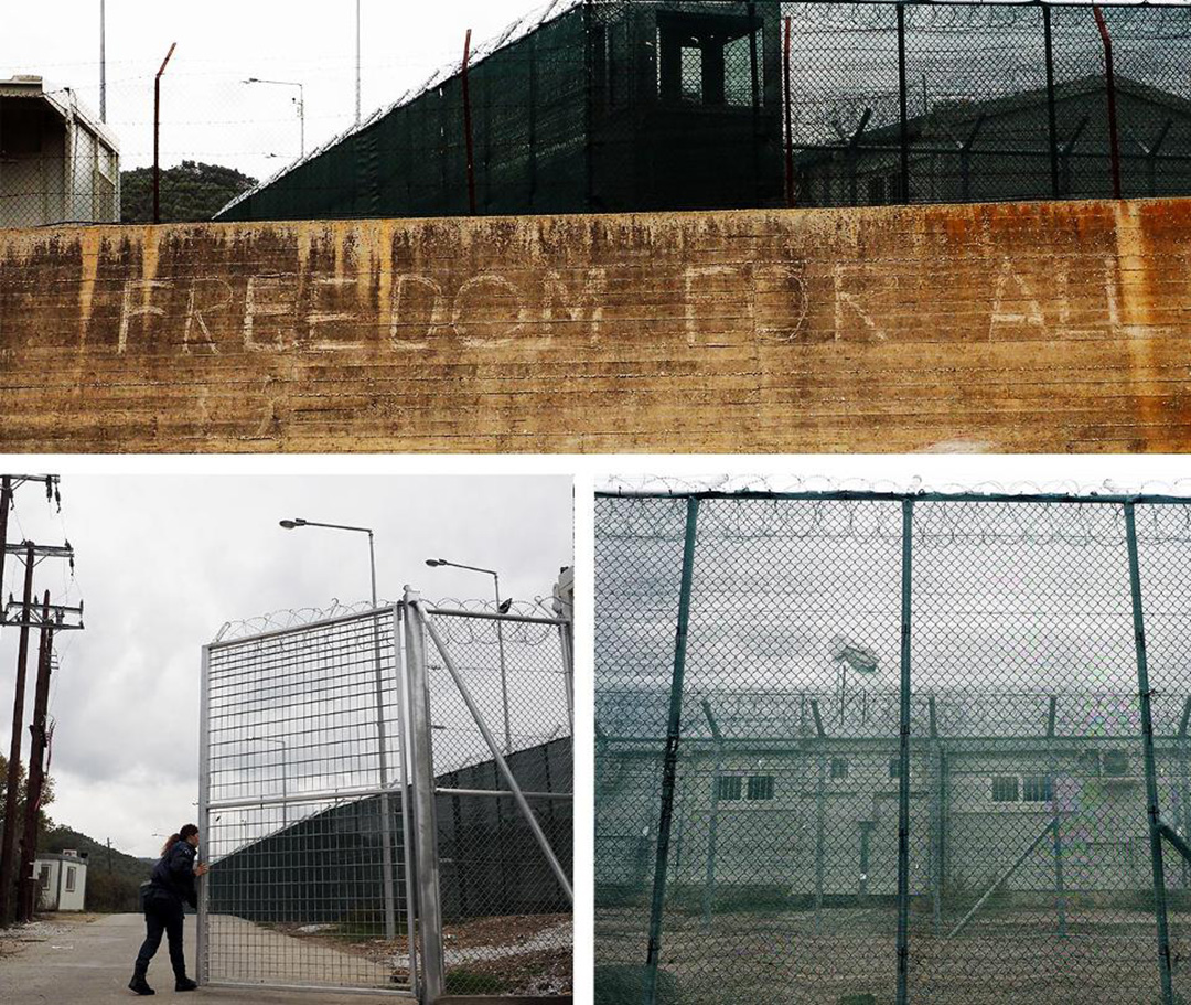 Αυτή ήταν η πρώτη φορά που βρέθηκα στη Μόρια. Παρά τις σχετικές άδειες και διαβεβαιώσεις που είχαν δοθεί τότε από τις αρμόδιες αρχές, δεν μας επιτράπηκε από την Αστυνομία η είσοδος μέσα στις εγκαταστάσεις. Ήταν μια κλειστή δομή, ένα προαναχωρησιακό κέντρο, που θύμιζε στην αρχιτεκτονική του την Αμυγδαλέζα: συστάδες από κοντέινερ και ψηλά κάγκελα που κατέληγαν σε συρματοπλέγματα. Στον τοίχο της εξωτερικής περίφραξης ακτιβιστές είχαν γράψει το σύνθημα: «Freedom for all» («Ελευθερία σε όλους»).