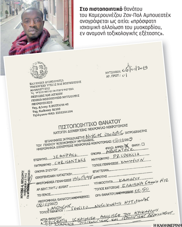 Τον Ιανουάριο του 2019 ένας ακόμη άνθρωπος πέθανε στη Μόρια. Ο 24χρονος Καμερουνέζος Ζαν-Πολ Αμπουεατέκ. Οι αρμόδιοι έσπευσαν να αποσυνδέσουν αυτό το περιστατικό από το ψύχος. Ακόμη δεν είναι ξεκάθαρο τι ακριβώς του συνέβη. Στο πιστοποιητικό θανάτου του αναγράφεται ως αιτία «πρόσφατη ισχαιμική αλλοίωση του μυοκαρδίου, εν αναμονή τοξικολογικής εξέτασης». Τους επόμενους μήνες θα σημειώνονταν και άλλοι θάνατοι. Μια γυναίκα απανθρακώθηκε τον Σεπτέμβριο του 2019 όταν κάηκε το κοντέινερ όπου διέμενε. Το Νοέμβριο πέθανε ένα βρέφος εννέα μηνών. Νωρίτερα, σύμφωνα με γιατρούς που το είχαν εξετάσει, εμφάνιζε συμπτώματα αφυδάτωσης.