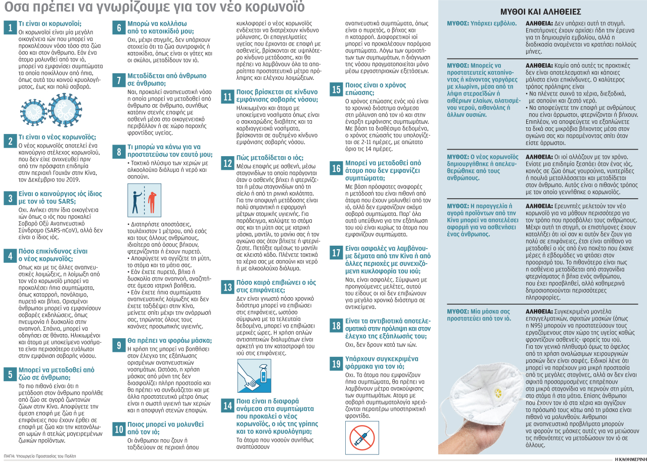 Τις ανακοινώσεις για την πρώτη ασθενή του νέου κορωνοϊού στη χώρα μας έκανε χθες ο εκπρόσωπος του υπουργείου Υγείας για τη νόσο, καθηγητής Παθολογίας Λοιμώξεων του ΕΚΠΑ Σωτήρης Τσιόδρας, ο οποίος συνέστησε ψυχραιμία, ενώ ζήτησε από όσους επιστρέφουν από περιοχές της βόρειας Ιταλίας με συνεχιζόμενη τη μετάδοση της νόσου «να επιτηρούν την υγεία τους και σε περίπτωση συμπτωμάτων να μένουν στο σπίτι και να ειδοποιούν τον γιατρό τους ή τον Εθνικό Οργανισμός Δημόσιας Υγείας ώστε να γίνονται οι απαραίτητες ενέργειες».
