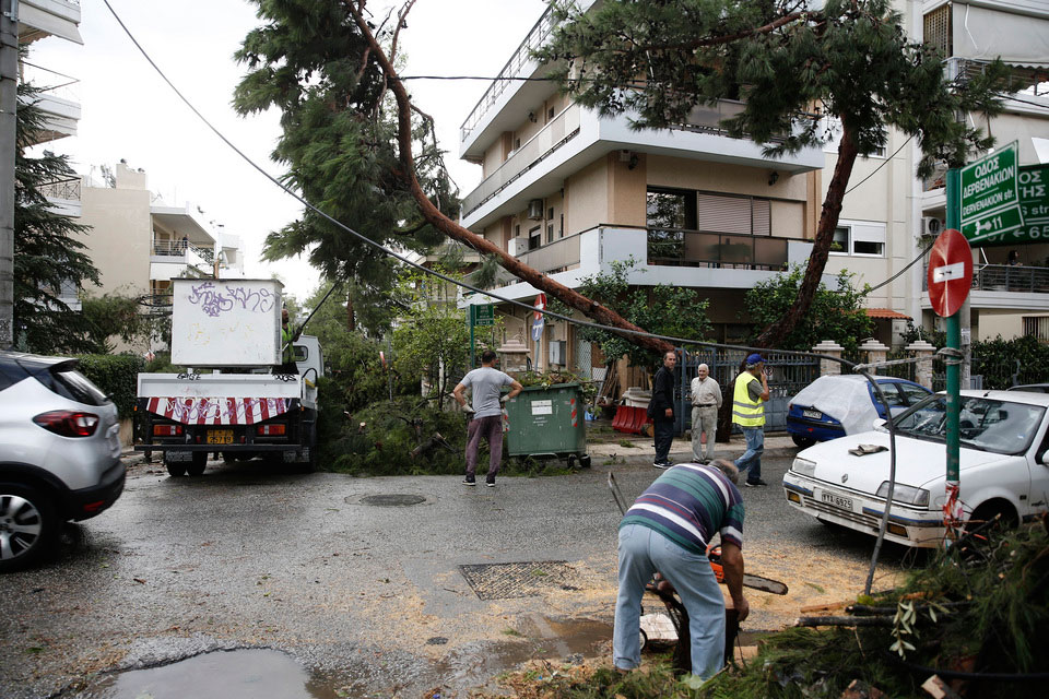 Λίγο πριν τις 06:00 το πρωί της Τρίτης, ισχυρές καταιγίδες ξεκίνησαν να πλήττουν το λεκανοπέδιο της Αττικής κατά το πέρασμα ενός ψυχρού μετώπου με κίνηση προς τα ανατολικά-βορειοανατολικά. Το δίκτυο των μετεωρολογικών σταθμών του Εθνικού Αστεροσκοπείου Αθηνών/meteo.gr κατέγραψε ισχυρές ριπές ανέμων κατά τη διάρκεια των καταιγίδων σε όλο το λεκανοπέδιο.