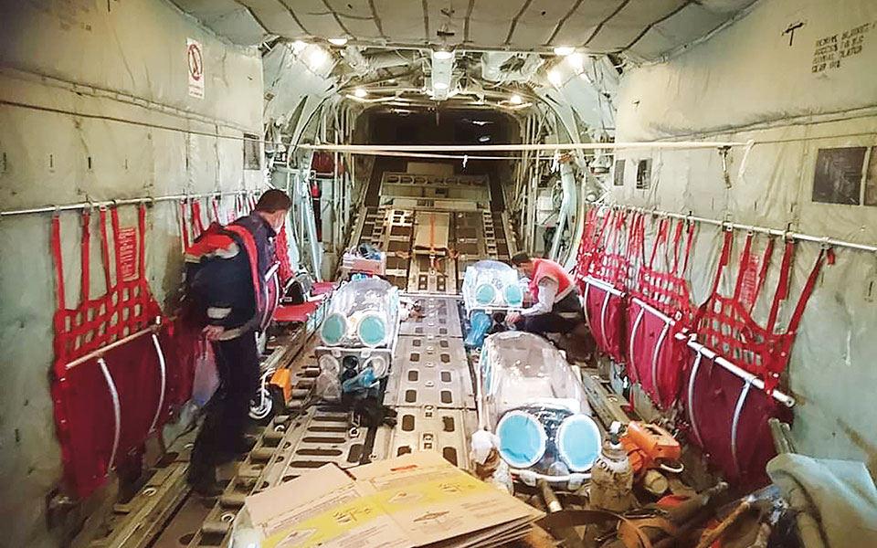 Η πολύ δύσκολη κατάσταση που επικρατεί στα νοσοκομεία της Μακεδονίας και η συνεχιζόμενη αύξηση των σοβαρών περιστατικών COVID-19 που χρειάζονται νοσηλεία σε ΜΕΘ οδήγησαν χθες και στην πρώτη αεροδιακομιδή περιστατικών από τη Βόρεια Ελλάδα σε νοσοκομεία της Αθήνας. Λόγω της μεγάλης επιβάρυνσης του νοσοκομείου Δράμας –και οι 12 κλίνες Εντατικής ήταν χθες κατειλημμένες–, οι γιατροί του νοσοκομείου κάλεσαν το ΕΚΑΒ τα ξημερώματα της Πέμπτης, ζητώντας τη διακομιδή ασθενών σε άλλη μονάδα. Από το ΕΚΑΒ τους ζητήθηκε να εντοπίσουν τρεις ασθενείς οι συγγενείς των οποίων δέχονται να γίνει διακομιδή σε νοσοκομείο της Αθήνας. Σημειώνεται ότι με C-130 μπορούν να διακομισθούν ταυτόχρονα έως τρεις ασθενείς σε φορητούς θαλάμους αρνητικής πίεσης (κάψουλες).