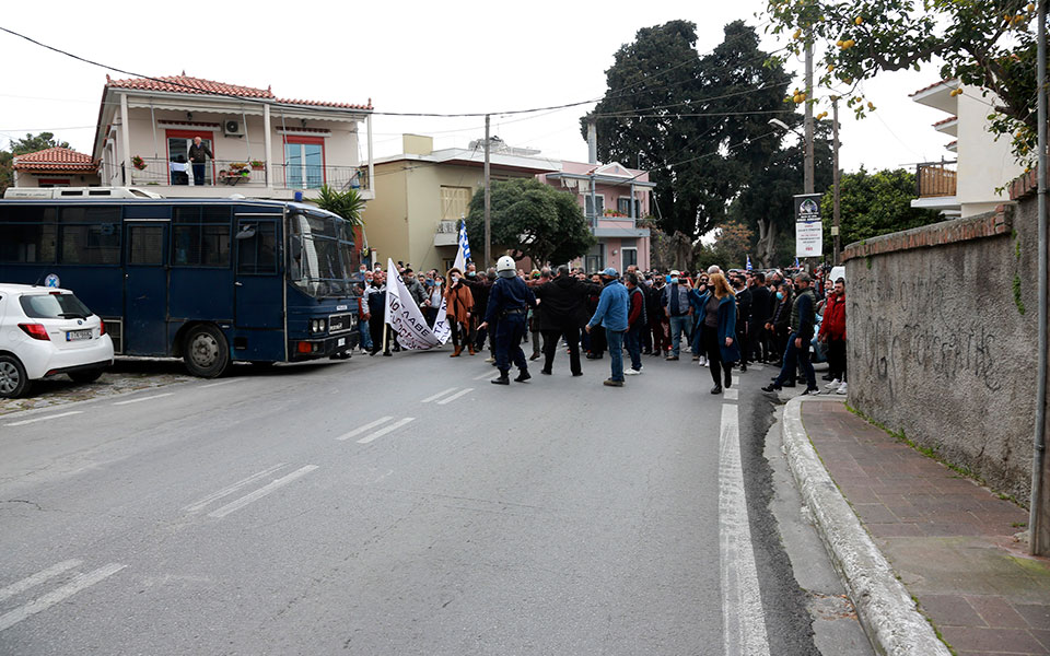 Οι διαδηλωτές διαμαρτύρονται για την προοπτική κατασκευής νέας δομής και για τα όσα προτείνεται να περιλαμβάνονται στο νέο Σύμφωνο Μετανάστευσης.