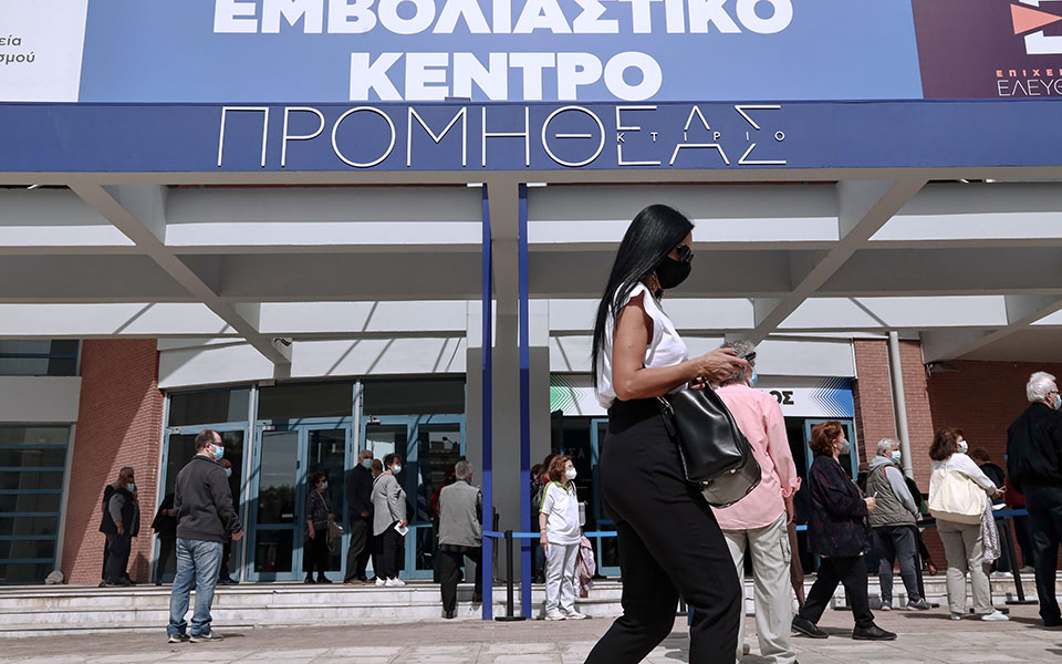 Στο εμβολιαστικό κέντρο «Προμηθέας» στο Μαρούσι, έσπευσε πλήθος κόσμου για να εμβολιαστεί.