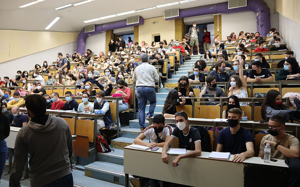 Τα χειροκροτήματα που ακούστηκαν χθες σε πολλά αμφιθέατρα και ο ενθουσιασμός των φοιτητών για την επιστροφή στα πανεπιστήμια επισκίασαν τις εύλογες ανησυχίες για τις συνθήκες των μαθημάτων εν μέσω της πανδημίας, που έχει στιγματίσει τη ζωή μας. Αλλωστε, οι εικόνες συνωστισμού των φοιτητών που αποτυπώθηκαν χθες υποδηλώνουν την αντίφαση με τα υγειονομικά μέτρα και τις υποδείξεις. Ευτυχώς οι περισσότεροι φοιτητές ήταν εμβολιασμένοι, ενώ δεν υπήρξαν «κρούσματα αντίστασης»από φοιτητές που αρνήθηκαν την επίδειξη των πιστοποιητικών εμβολιασμού. Για τον έλεγχο των πιστοποιητικών χρειάστηκαν περίπου 30 λεπτά, πριν από την έναρξη των μαθημάτων, αλλά στις περισσότερες περιπτώσεις ήταν δειγματοληπτικός.