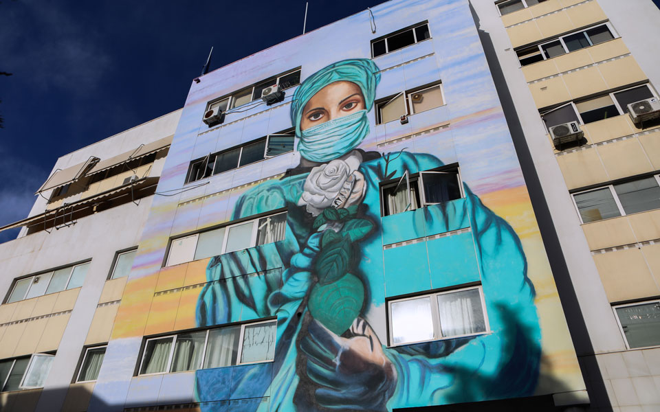 Ένα εντυπωσιακό mural, αφιερωμένο στους γιατρούς και τους νοσηλευτές που βρίσκονται στην πρώτη γραμμή της μάχης με την πανδημία, κοσμεί τον τοίχο του Τζανείου νοσοκομείου.