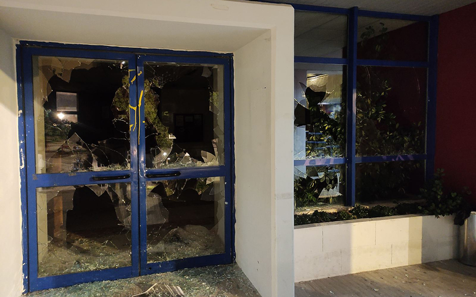 Το χτύπημα έγινε εξωτερικά με σπάσιμο πολλών τζαμιών, καθώς και με μπογιές που πετάχτηκαν στο εσωτερικό.