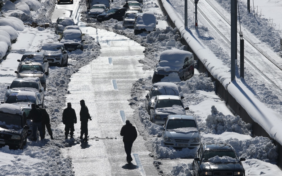 Έτσι, λόγω συσσώρευσης μεγάλου όγκου χιονιού η κυκλοφορία στην Περιφερειακή Υμηττού διακόπηκε.