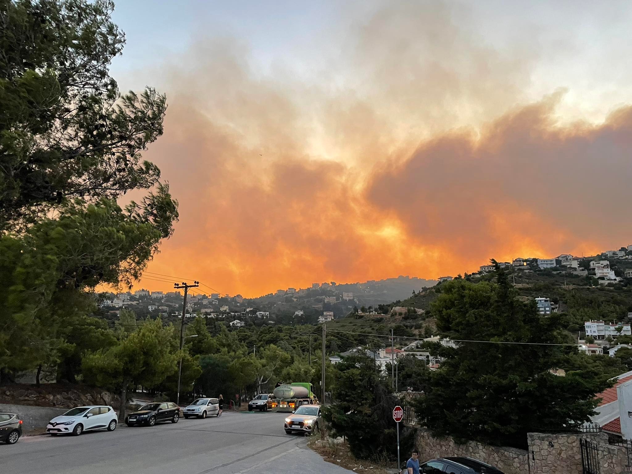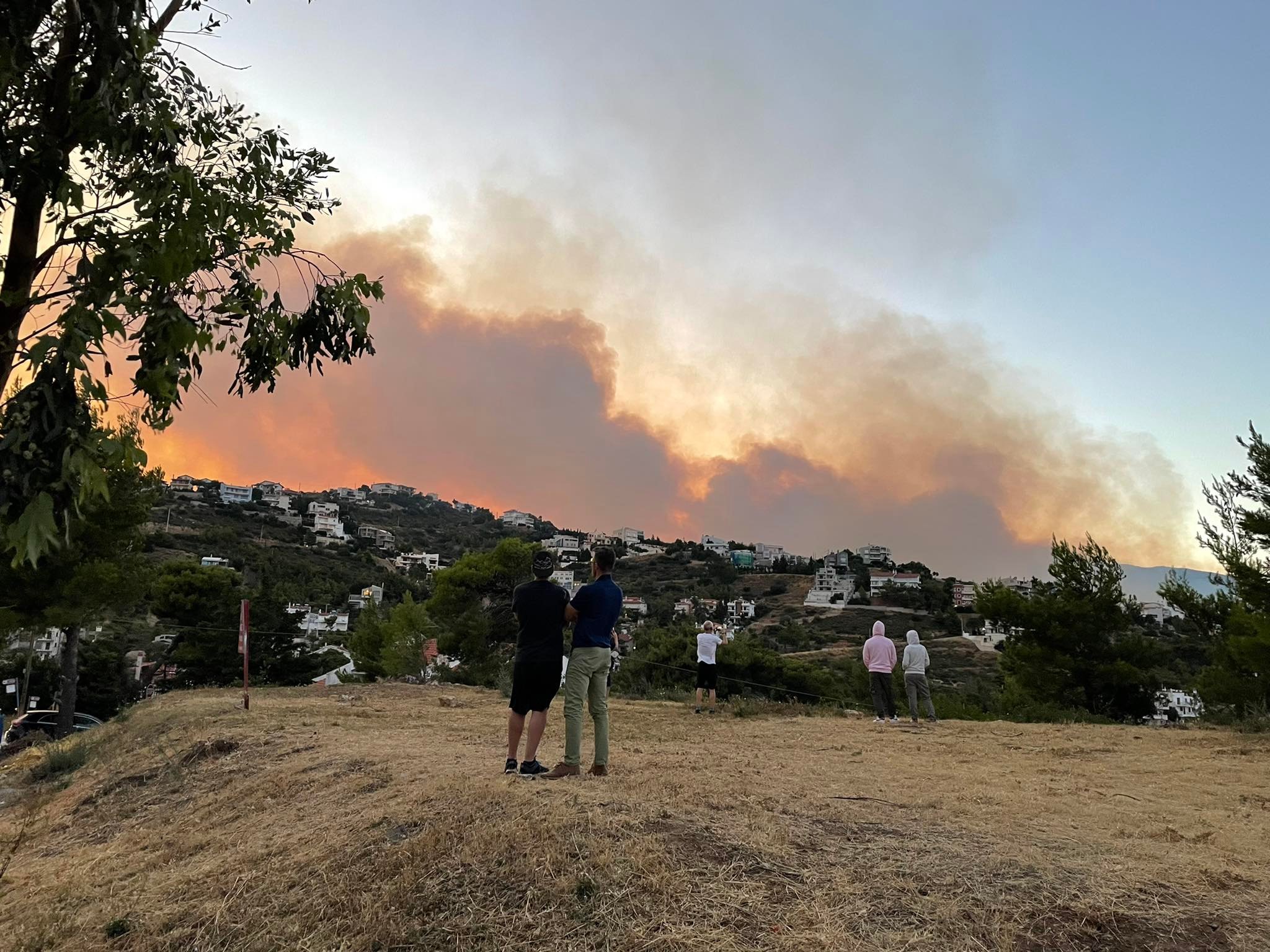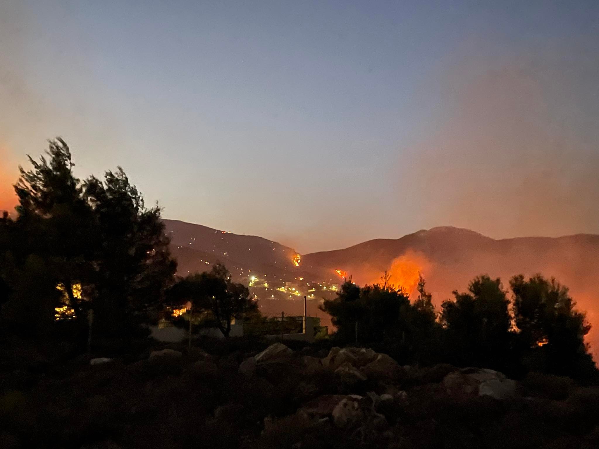 Μήνυμα από το 112 εστάλη και στους κατοίκους των οικισμών Διώνη και Δασαμάρι για να εκκενώσουν προς Παλλήνη.