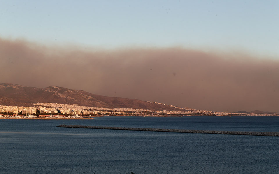 Ο καπνός της φωτιάς όπως φαίνεται από τον Πειραιά