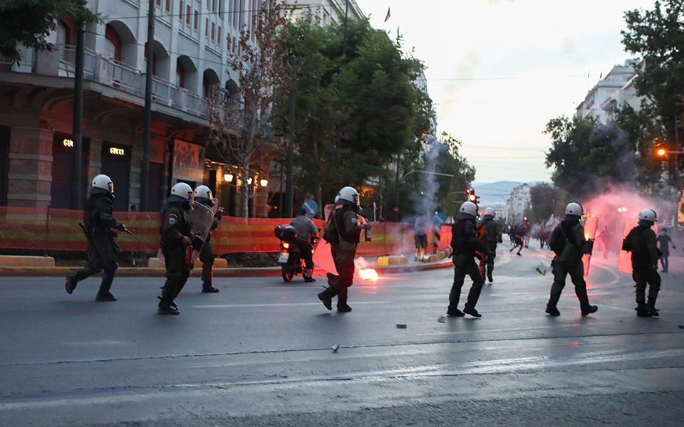 Κατά τη διάρκεια της πορείας, ομάδες ατόμων που είχαν αποκοπεί από το κύριο σώμα αυτής ,έχοντας καλυμμένα τα χαρακτηριστικά τους άρχισαν να εξαπολύουν επιθέσεις με ρίψεις πλήθους μολότοφ, πετρών, μαρμάρων, γυάλινων μπουκαλιών στις αστυνομικές δυνάμεις, που βρίσκονταν επί της πλατείας Κολοκοτρώνη, στη συμβολή των οδών Ακαδημίας και Ασκληπιού, Σταδίου και Ομήρου, Βουκουρεστίου και Πανεπιστημίου, Εδουάρδου Λω και Σταδίου και Πανεπιστημίου και Αμερικής.