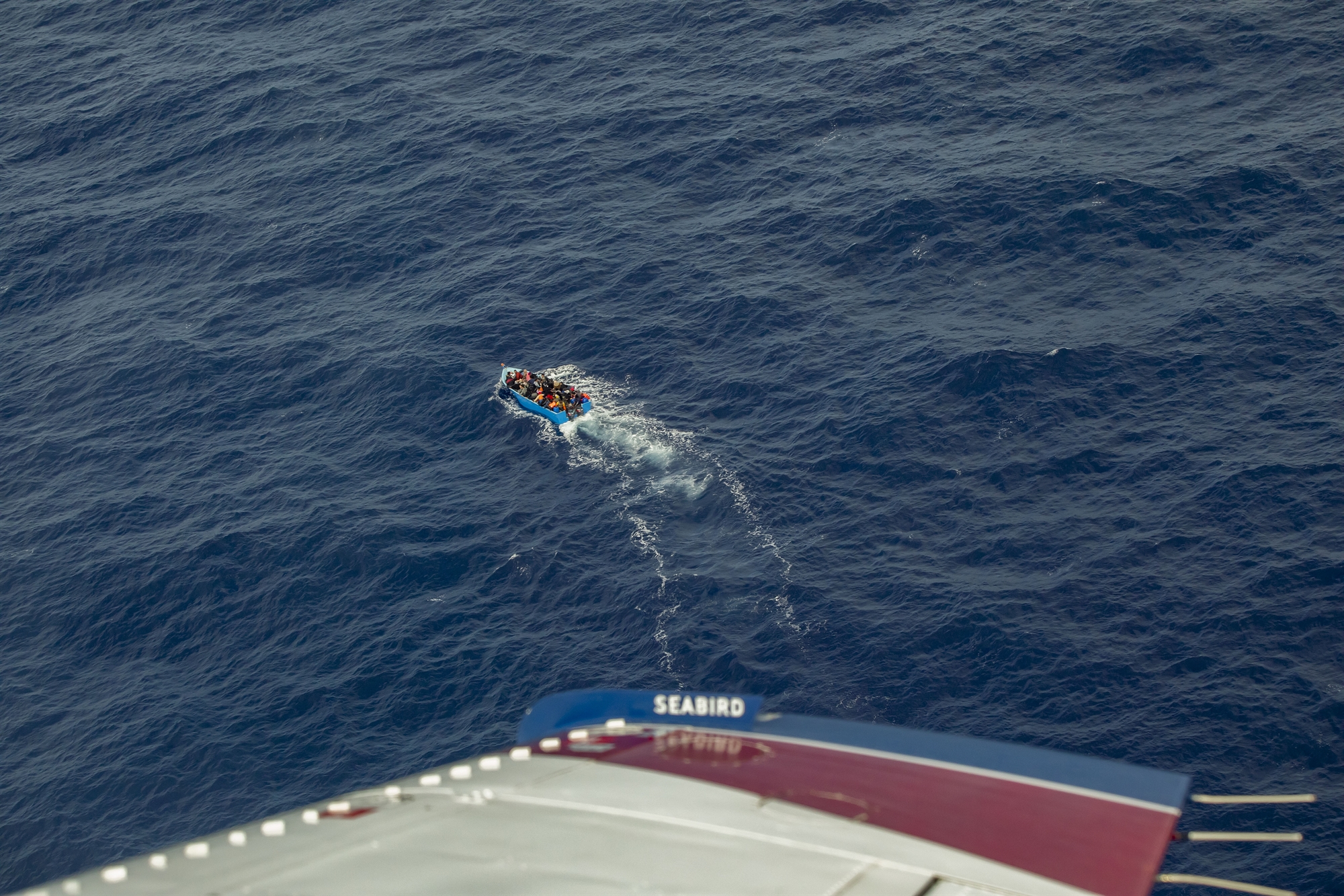 Απογειώνεται από το αεροδρόμιο της Λαμπεντούζα νοτίως της Σικελίας και ψάχνει να εντοπίσει από ψηλά βάρκες και πλοιάρια με απελπισμένους, που φεύγουν από τις ακτές της Λιβύης (κυρίως) προς την Ευρώπη, για να ειδοποιήσει στη στεριά να σπεύσουν να τους βοηθήσουν.