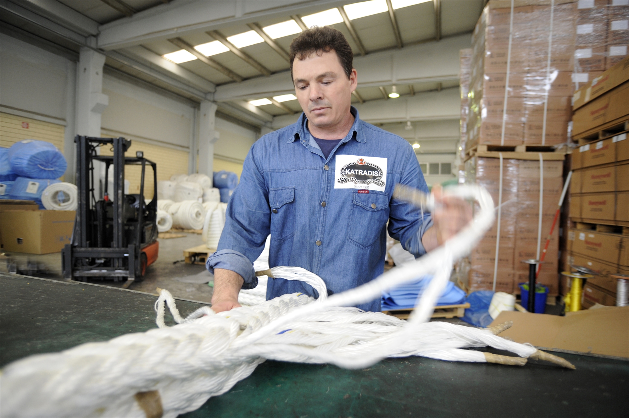 Αναζητώντας την εγχώρια ιστορία των ναυτιλιακών σχοινιών συναντάμε στον Πειραιά μια οικογενειακή επιχείρηση με βάθος τριών γενεών και με ρίζες στη Σμύρνη και τη Χίο, την Katradis Group της οικογένειας Κατράδη, με έτος ίδρυσης το 1936. Στα γραφεία τους στη Δραπετσώνα, μια ανάσα από την ασταμάτητη εμπορική κίνηση του κεντρικού λιμανιού της χώρας, συναντάμε τον Νικόλαο Κατράδη και τον γιο του Κωνσταντίνο, και ρίχνουμε φως όχι μόνο στα καραβόσχοινα, αυτούς τους «εργάτες» της ναυτιλίας μας που κρατούν γερά δεμένα τα πλοία στους ντόκους, αλλά και σε μια σειρά από ιστορίες με πολύτιμο ιστορικό, κοινωνικό, επιστημονικό και ναυτιλιακό ενδιαφέρον.