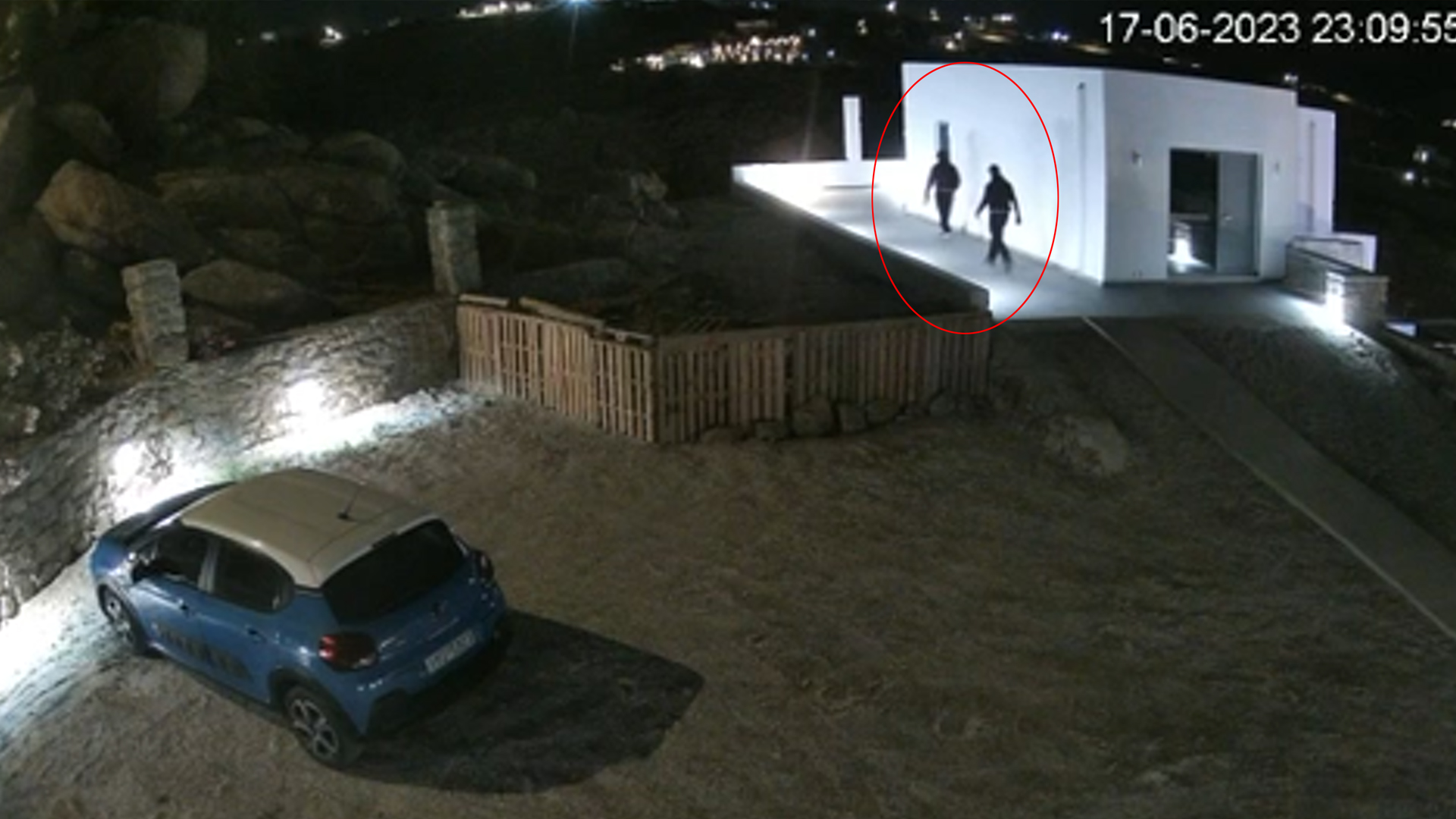 Στις εικόνες αποτυπώνονται οι κινήσεις δύο μελών της ομάδας από «χτύπημα» που πραγματοποίησαν στα μέσα Ιουνίου σε βίλα στο νησί των ανέμων.