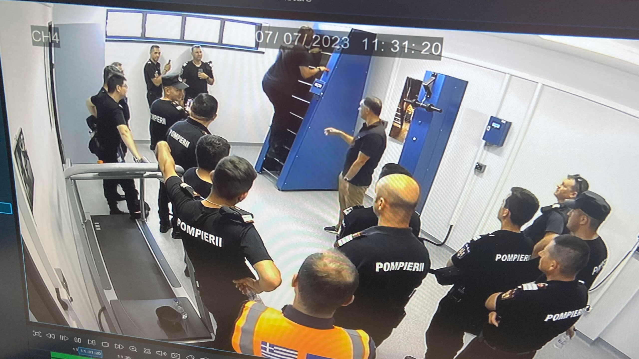 Όσο για το τι κάνει ένας πυροσβέστης από άλλη χώρα την περίοδο που βρίσκεται στο κέντρο εκπαίδευσης στη Νέα Μάκρη, ο συντονιστής του προγράμματος, κ. Μπίκας, μας καλεί να μπούμε σε ένα ειδικό δωμάτιο όπου γίνεται προσομοίωση πυρκαγιάς κλειστού χώρου.