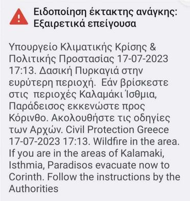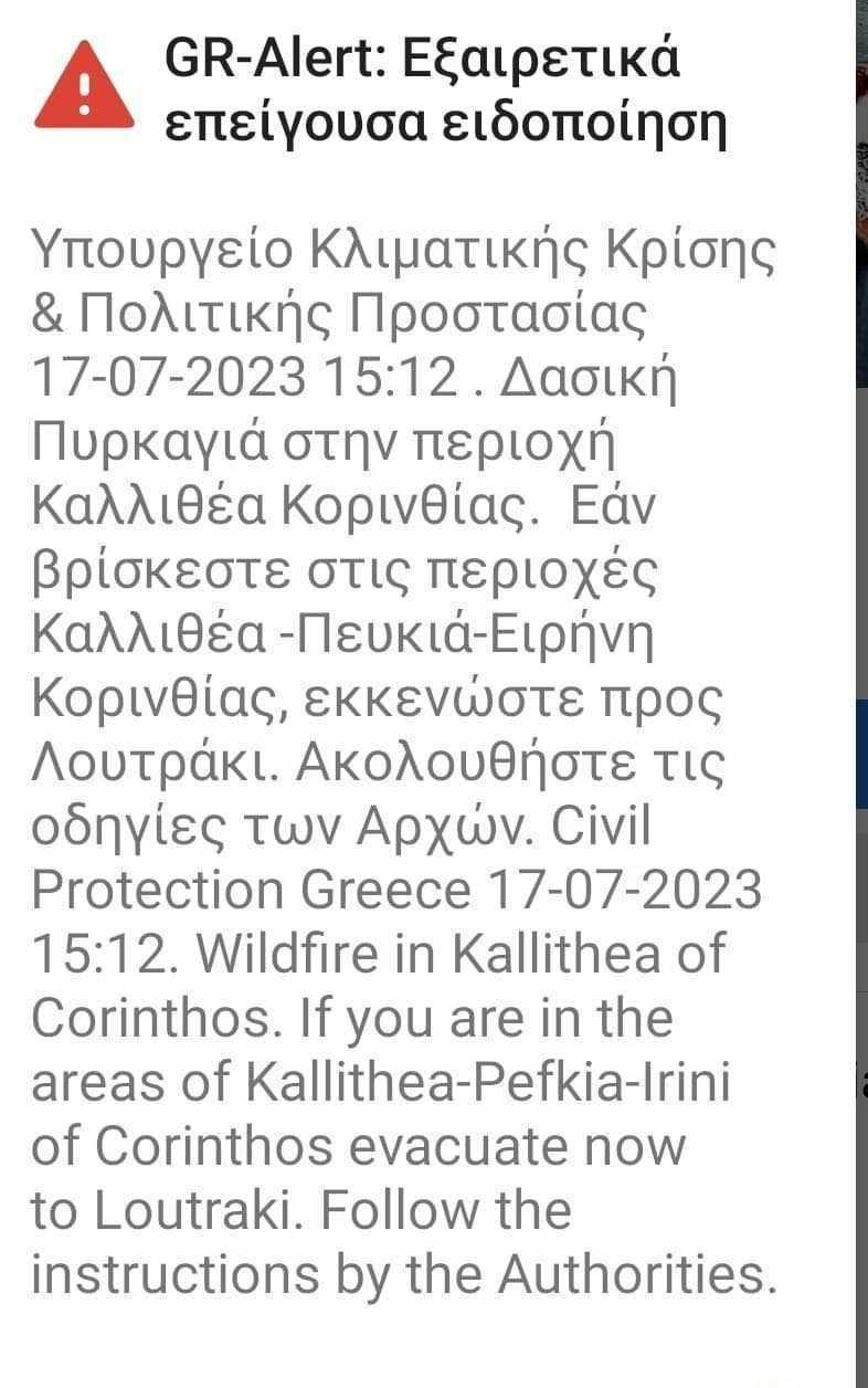 - 17:27Μήνυμα του 112 για εκκένωση των περιοχών Καλαμάκι Ισθμίων και Παράδεισος