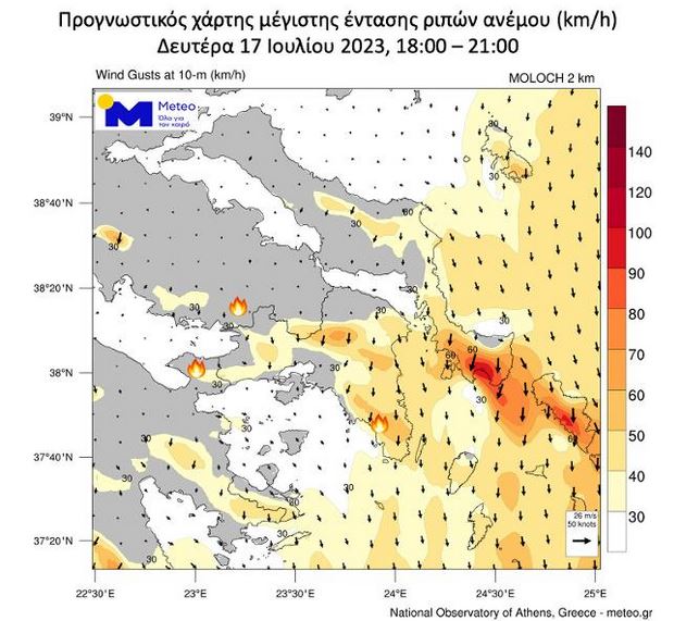 - 19:14Πρόγνωση έντασης ριπών ανέμων στις πυρκαγιές της Αττικής και Βοιωτίας