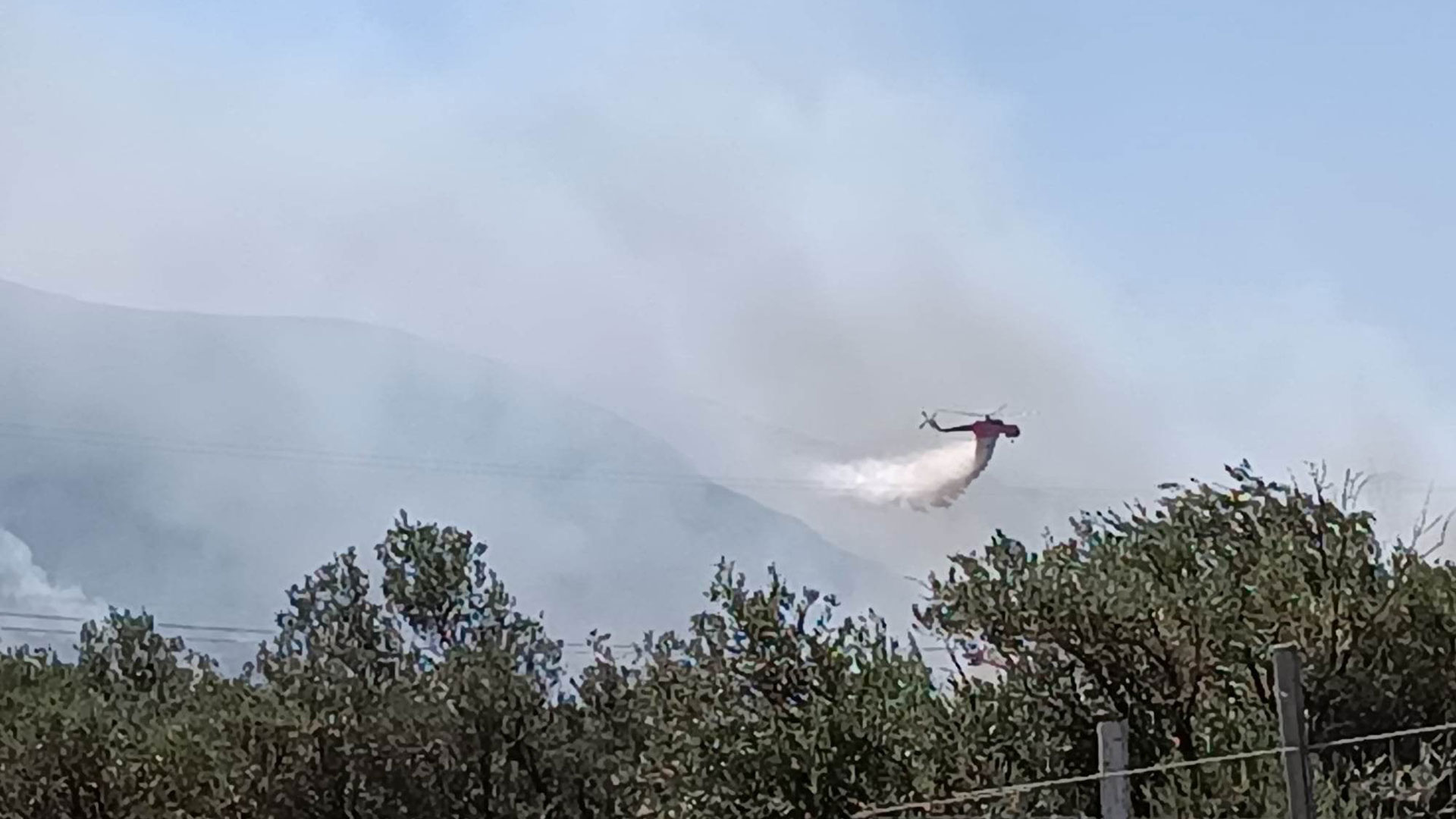 Στην περιοχή επιχειρούν 48 πυροσβέστες με 16 οχήματα, τέσσερα αεροσκάφη, δύο ελικόπτερα και ένα πεζοπόρο τμήμα.