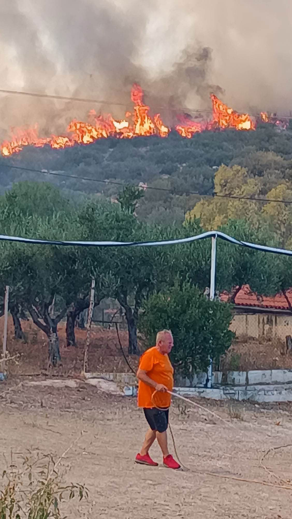 Με μάνικες παλεύουν τις φλόγες οι κάτοικοι