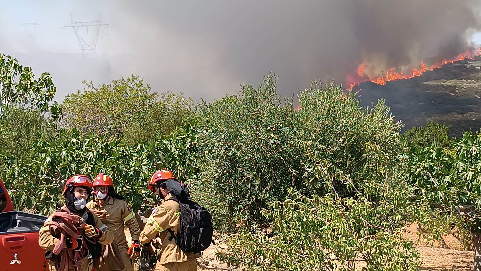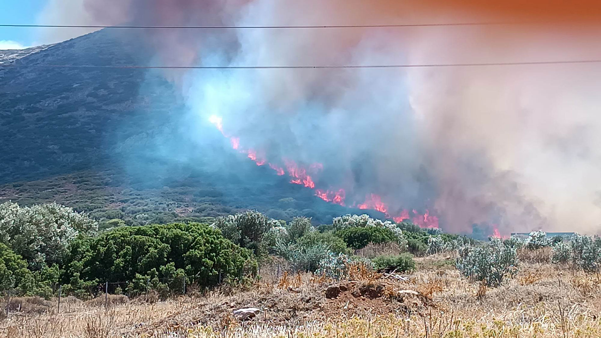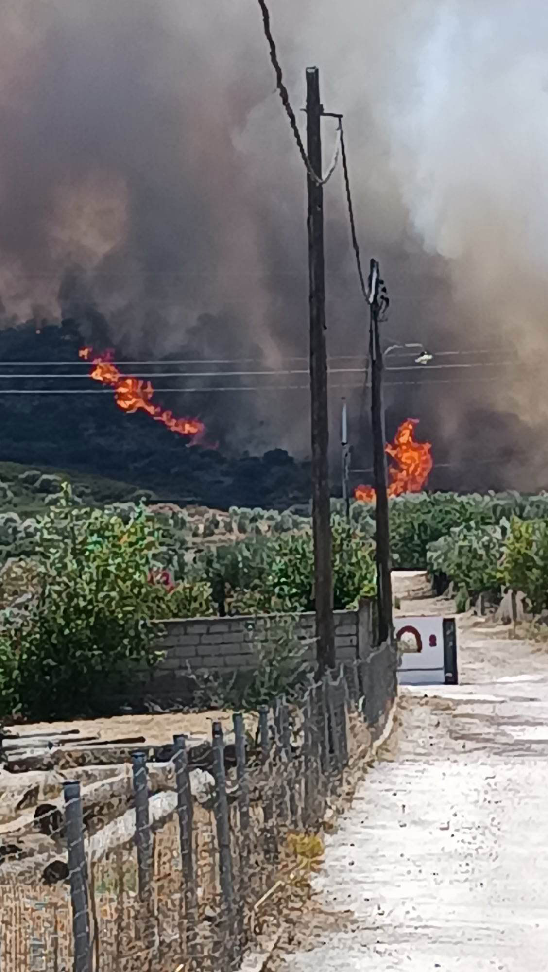Οι άνεμοι που πνέουν είναι ισχυροί και σπρώχνουν τις φλόγες στο περιαστικό δάσος, χωρίς ωστόσο μέχρι στιγμής να κινδυνεύουν σπίτια.