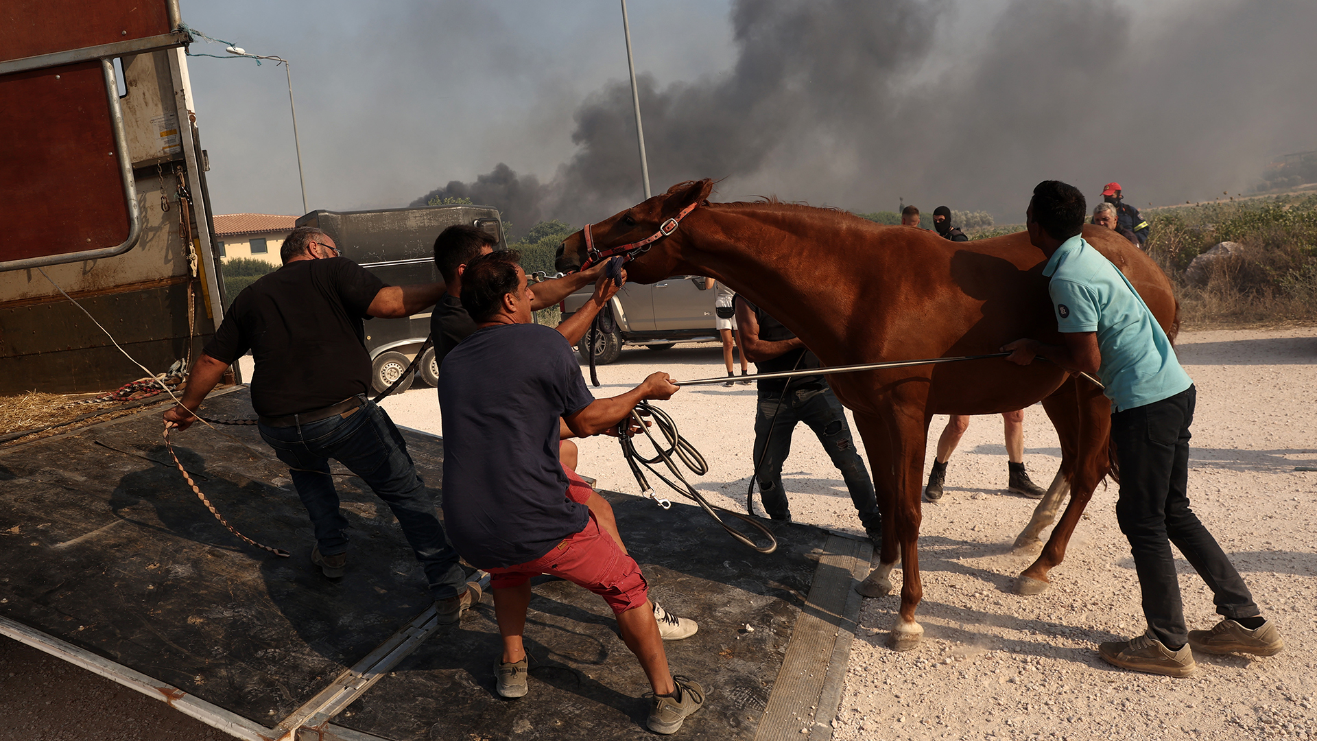 «Η φωτιά μας είχε περικυκλώσει. Ο στάβλος είχε παραδοθεί στις φλόγες» περιγράφει. «Όταν φτάσαμε εμείς τα περισσότερα άλογα τα φορτώνανε ήδη σε φορτηγά. Βοηθήσαμε στο να πιαστεί ένα άλογο που είχε μείνει μέσα στον στάβλο και δεν μας άφηνε να το πλησιάσουμε. Στη συνέχεια προσπαθήσαμε μέσα στις φλόγες να δούμε μήπως υπάρχει και κάποιο ακόμα που δεν είχε εντοπιστεί. Είχαμε την ενημέρωση πως υπήρχαν τρία άλογα που έτρεχαν μόνα τους, έμαθα αργότερα πως διασώθηκαν. Μέσα στον στάβλο κάηκε ένα σκυλί που δεν πρόλαβε να βγει έξω. Φεύγοντας, στην περιοχή της Αναβύσσου είδα πολλές νεκρές γάτες και κάποια σκυλιά, τα περισσότερα εικάζω πως ήταν αδέσποτα».