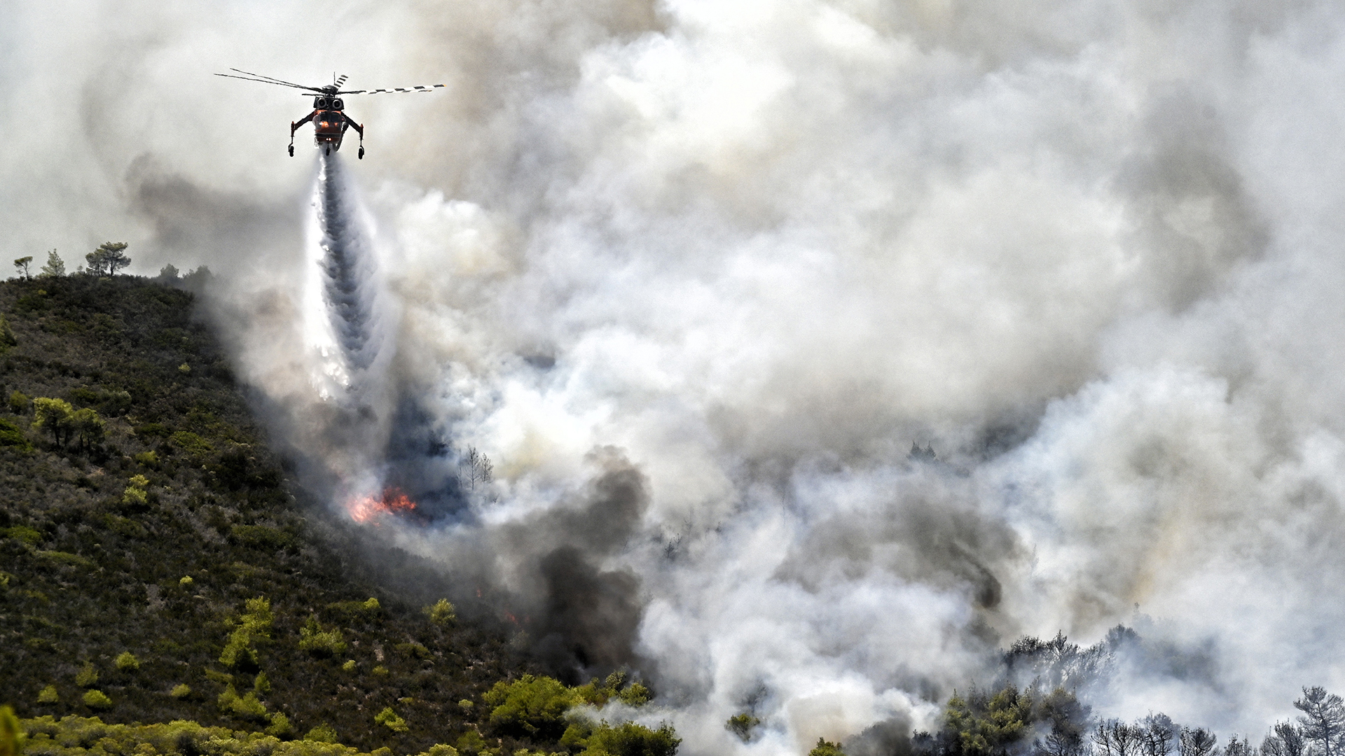 Για τρίτη ημέρα συνεχίζεται η μάχη με τις φλόγες στα τρία κύρια μέτωπα που παραμένουν σε εξέλιξη, στη Δυτική Αττική, το Λουτράκι και τη Ρόδο.