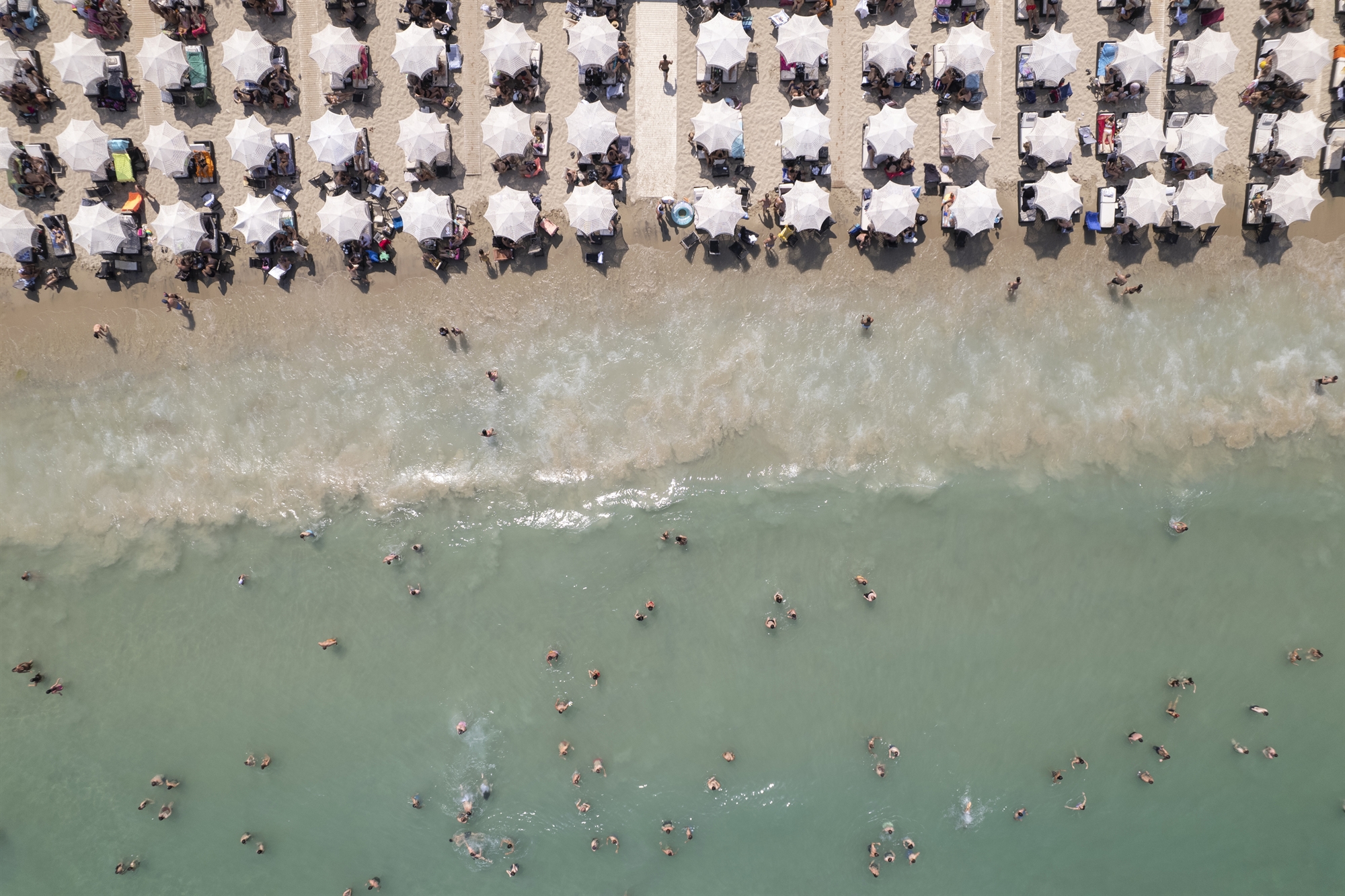 «Είναι όλες οι ξαπλώστρες γεμάτες και έχουμε πέντε παρέες σε αναμονή. Οι κρατήσεις έχουν γίνει από Παρασκευή, δεν δεχόμαστε άλλες».