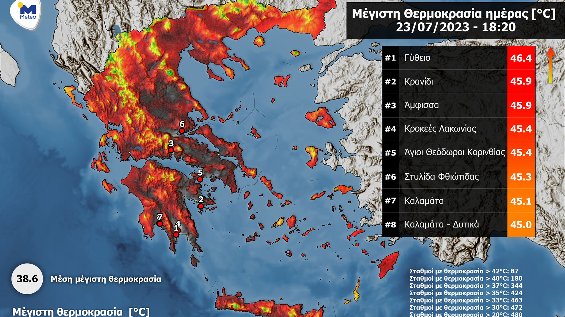 Η καταγραφή αυτή αποτελεί και τη μεγαλύτερη θερμοκρασία που έχει καταγραφεί ιστορικά στο δίκτυο αυτόματων μετεωρολογικών σταθμών του Εθνικού Αστεροσκοπείου Αθηνών / Μeteo.gr από το 2006. Το προηγούμενο ρεκόρ σημειώθηκε στην Μακρακώμη Φθιώτιδας στις 2 Αυγούστου του 2021 με τιμή 46.3 ºC.