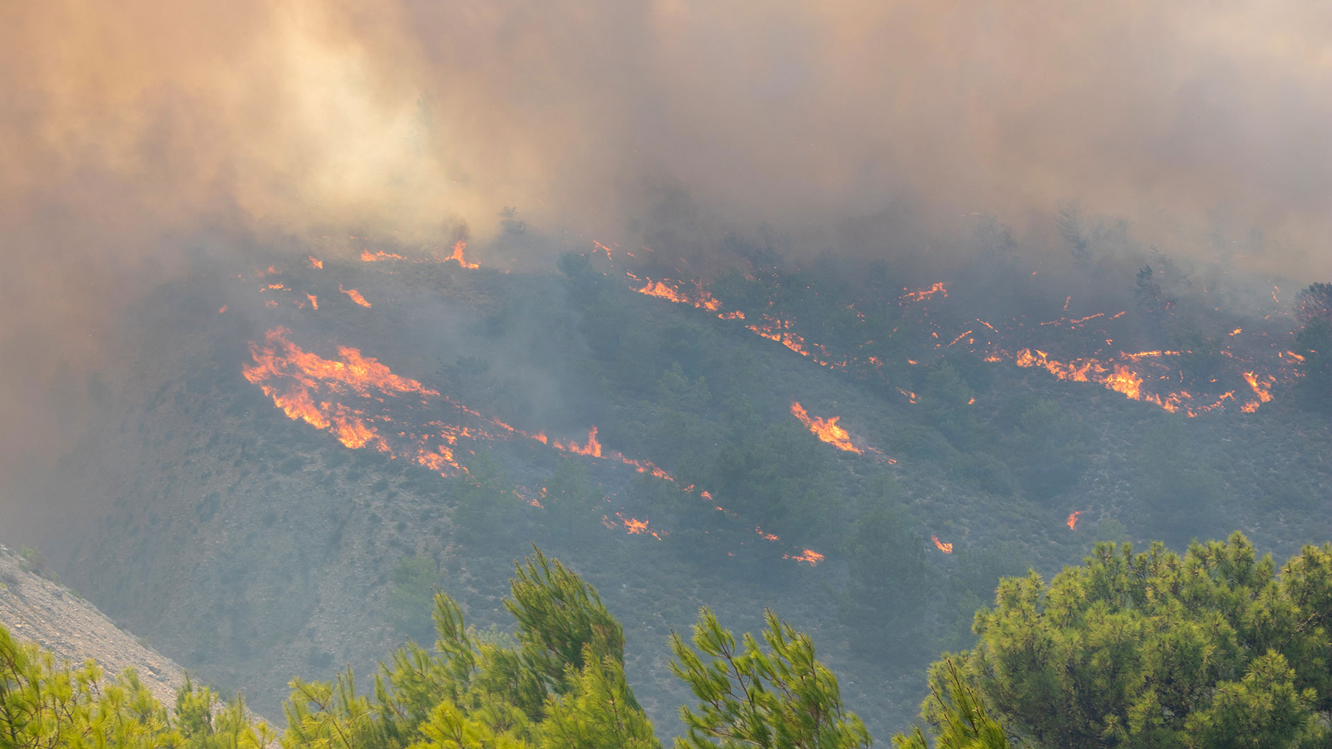 Υπό ιδιαίτερα αντίξοες καιρικές συνθήκες, λόγω των ισχυρών ανέμων που πνέουν στο νησί, δίνεται η μάχη για την κατάσβεση της πυρκαγιάς στο νησί της Ρόδου.