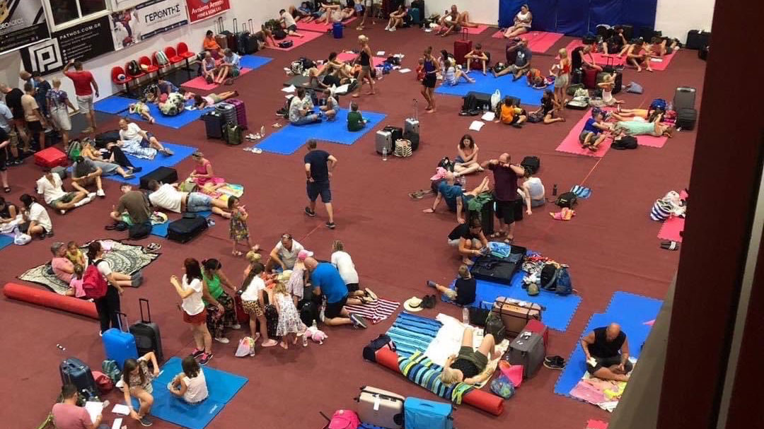Ωστόσο η φωτιά στη Ρόδο, η οποία σύμφωνα με τους νεότερους υπολογισμούς έχει κάψει τουλάχιστον 146.000 στρέμματα στο πέρασμά της, ανέτρεψε γρήγορα τα σχέδια με αποτέλεσμα οι τρεις τους να έχουν συγκεντρώσει όλα τα υπάρχοντά τους γύρω από τρία στρώματα τα οποία βρίσκονται περίπου στο κέντρο του γυμναστηρίου.
