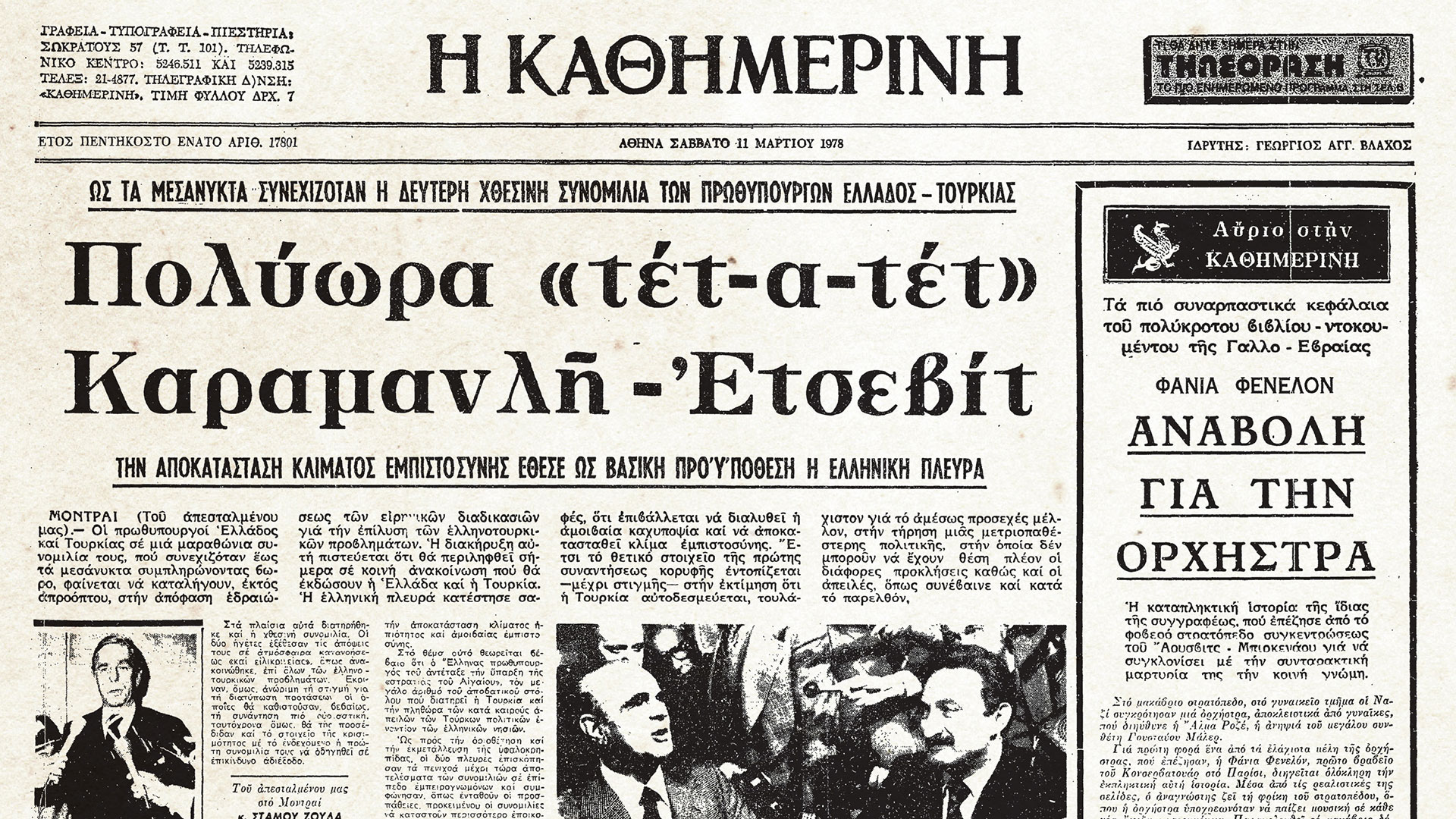 Λαμβάνοντας πάντα υπόψη την ευρωπαϊκή προοπτική της Ελλάδας, η οποία εξακολουθούσε να βρίσκεται υπό διαπραγμάτευση, ο Κων. Καραμανλής δέχθηκε την πρόσκληση σε διάλογο με τον Τούρκο ομόλογό του. «Πολύωρα τετ-α-τετ Καραμανλή-Ετσεβίτ», έγραφε η «Καθημερινή» για να περιγράψει την έναρξη των συνομιλιών στο Μοντρέ της Ελβετίας, στις 10 Μαρτίου 1978.