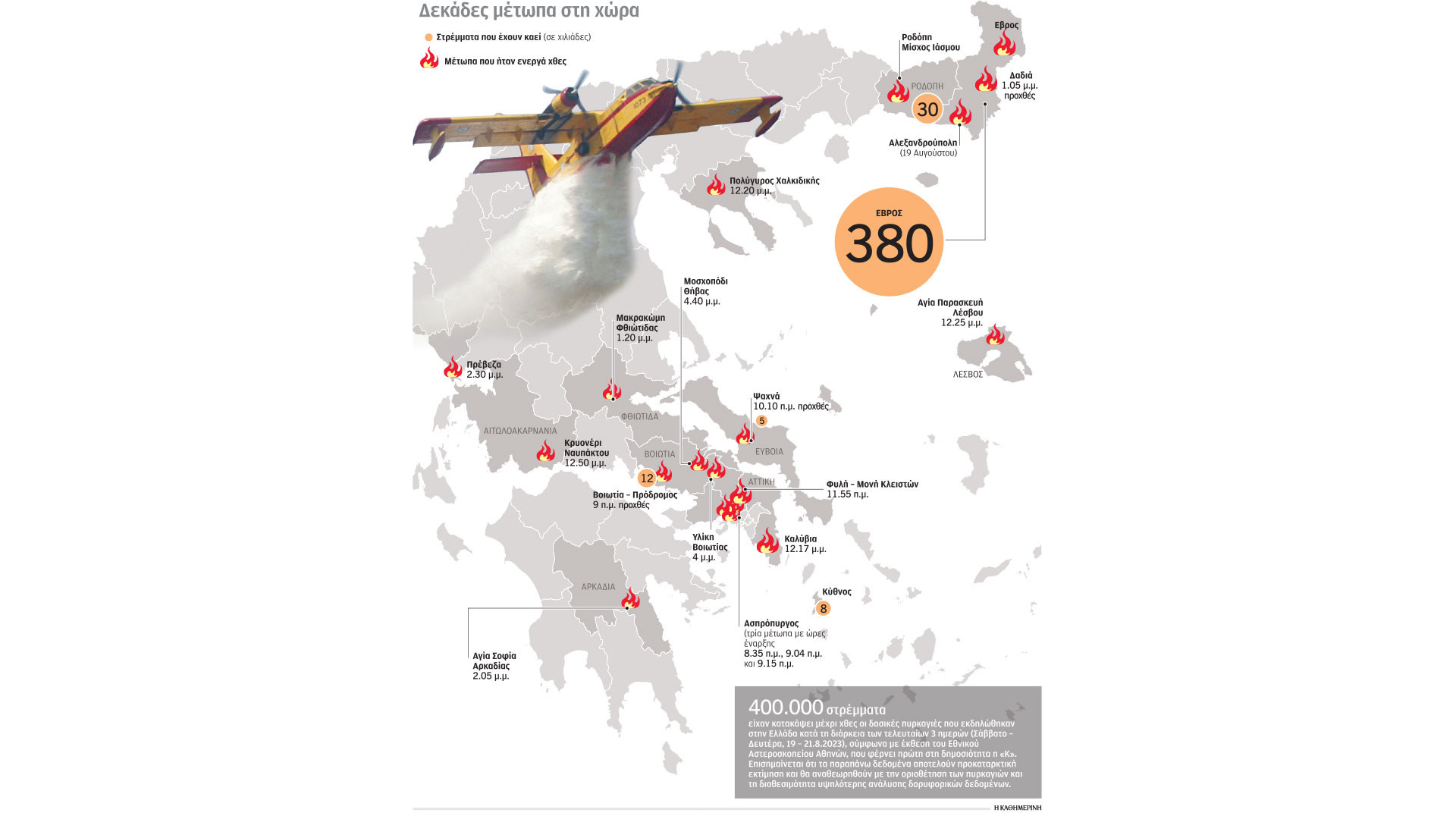 Συνολικά χθες σε όλη την Ελλάδα εκδηλώθηκαν 93 πυρκαγιές, ενώ στο έργο της κατάσβεσης συνέδραμε και ο ευρωπαϊκός μηχανισμός πολιτικής προστασίας RescEU με μέσα και προσωπικό.