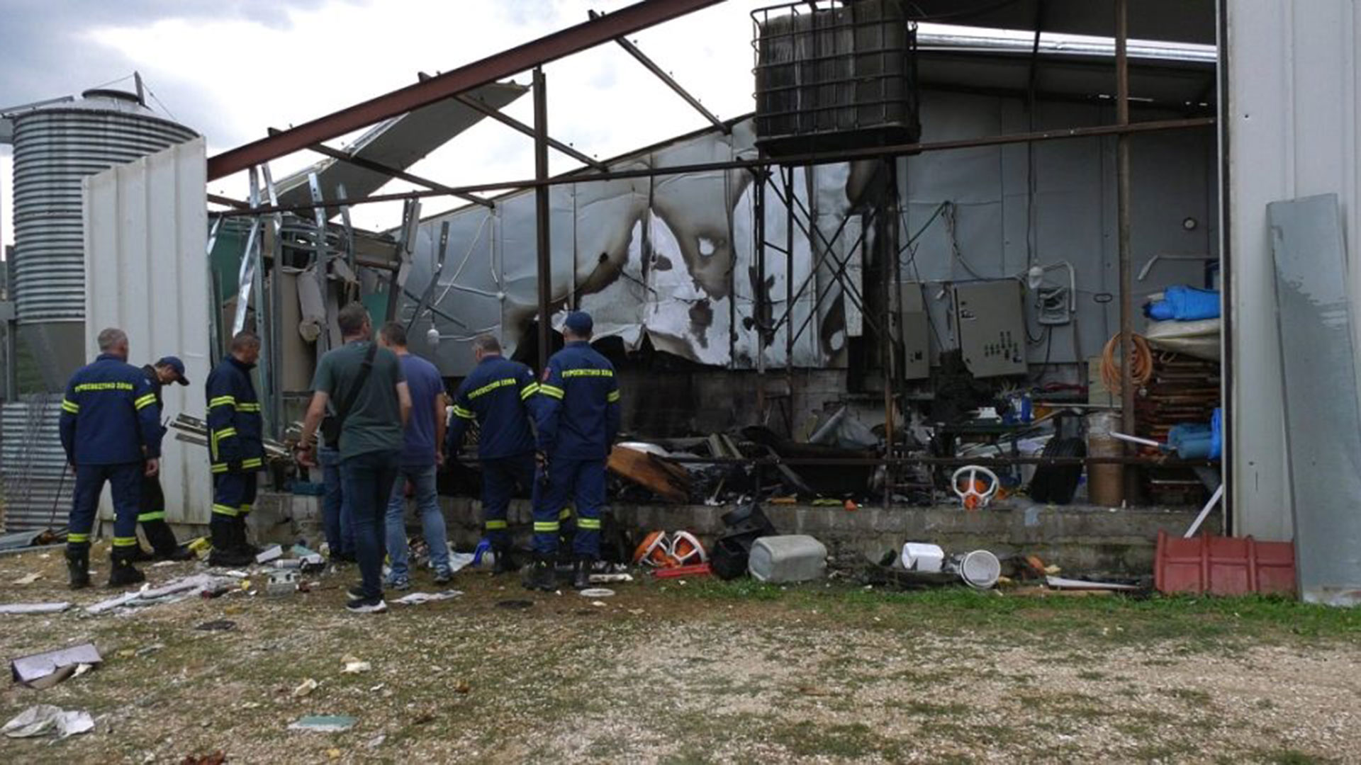 Από την έκρηξη, οι λαμαρίνες του πτηνοτροφείου εκτοξεύτηκαν στον περιβάλλοντα χώρο, ενώ οι πυροσβεστικές δυνάμεις που έσπευσαν στο σημείο με τρία οχήματα και 12 άνδρες, έθεσαν την πυρκαγιά υπό έλεγχο προτού επεκταθεί σε όλη τη μονάδα.