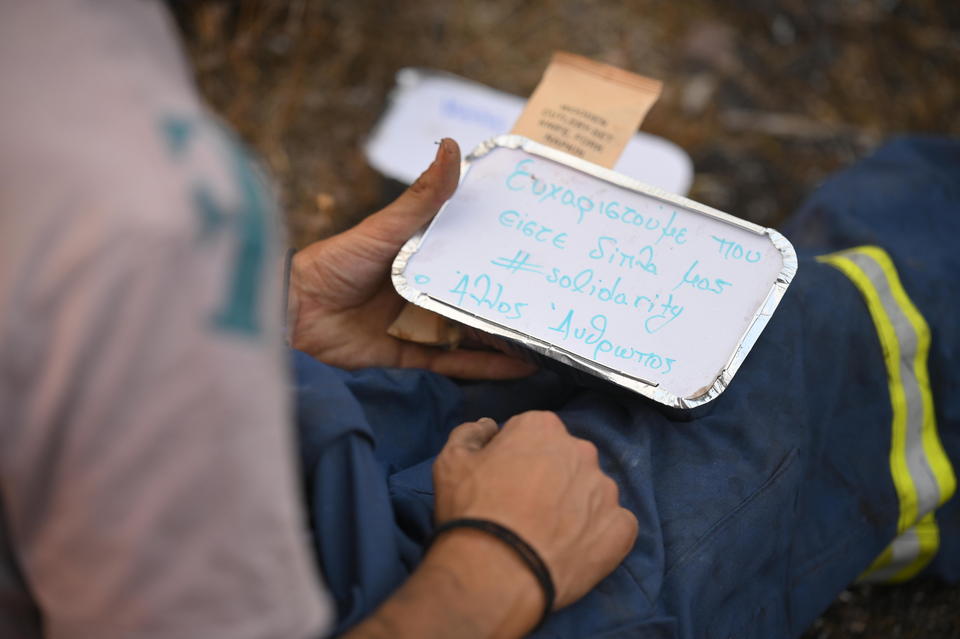 Κάποιες φορές φροντίζει ώστε να μεταφέρει στην πρώτη γραμμή μερικά κρύα γεύματα ώστε να μπορούν οι πυροσβέστες να κάνουν μικρά διαλείμματα ενέργειας που τόσο έχουν ανάγκη σε μια τέτοια συνθήκη. Ομως «το ζεστό φαγητό είναι σαν πέντε γεύματα κρύα», σχολιάζει ο Γιώργος Μεταξάς, θέλοντας να τονίσει την καταπραϋντική, σωματικά και ψυχολογικά δράση που μπορεί να έχει κάτι που σε μια άλλη συνθήκη θεωρούμε δεδομένο: ένα πιάτο φαγητό.