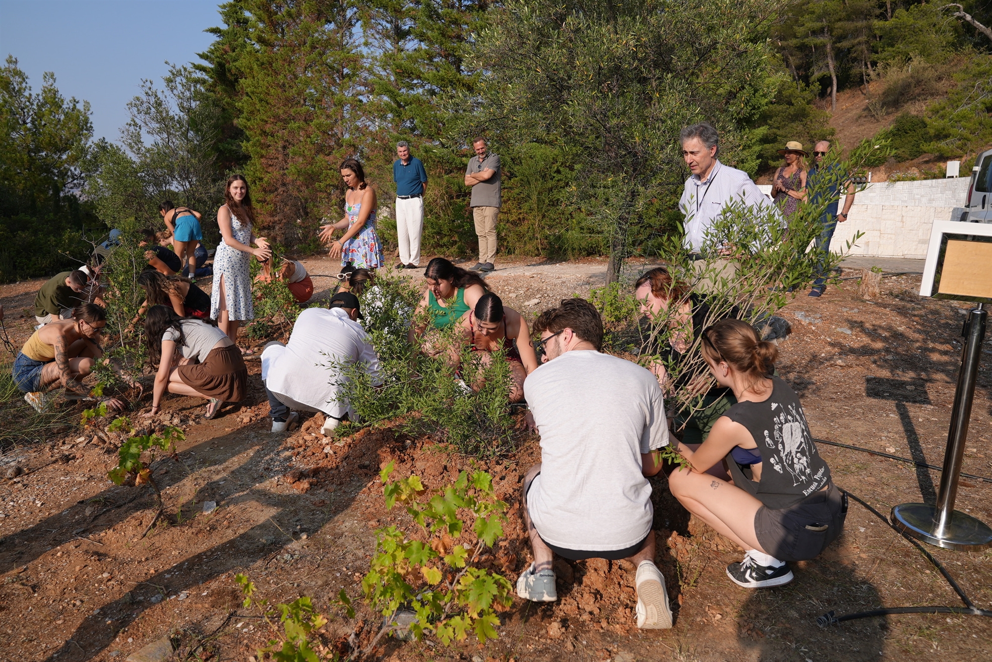 Ολοι μαζί γονάτισαν στο χώμα και φύτεψαν τα δέκα μικρά δεντράκια. Ο Τάσος Λαγός στάθηκε μπροστά τους και είπε λίγα λόγια εμφανώς συγκινημένος. «Ας είναι το μικρό αυτό μνημείο μια υπενθύμιση της δουλειάς που όλοι πρέπει να κάνουμε για να φέρουμε ευγένεια, καλοσύνη και αξιοπρέπεια σε αυτούς τους δύσκολους καιρούς», είπε στο τέλος της ομιλίας του, βουρκωμένος και με σπασμένη φωνή. Ηταν σαφές σε όλους τους παρευρισκομένους πως η τελετή είχε αγγίξει μέσα του κάτι βαθιά προσωπικό.