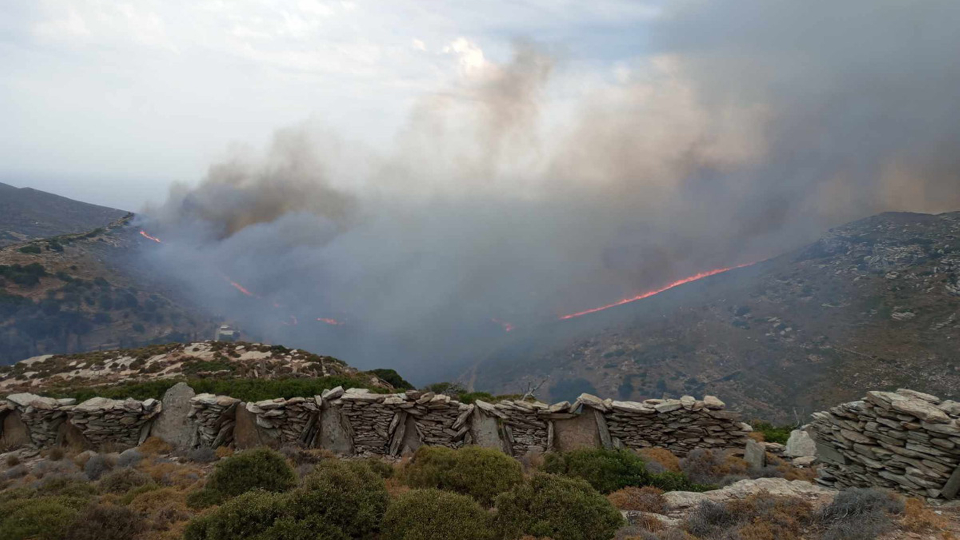 Διαστάσεις έχει λάβει η φωτιά που ξέσπασε νωρίτερα σήμερα στην Ανδρο, πιθανότατα από πτώση κεραυνού.