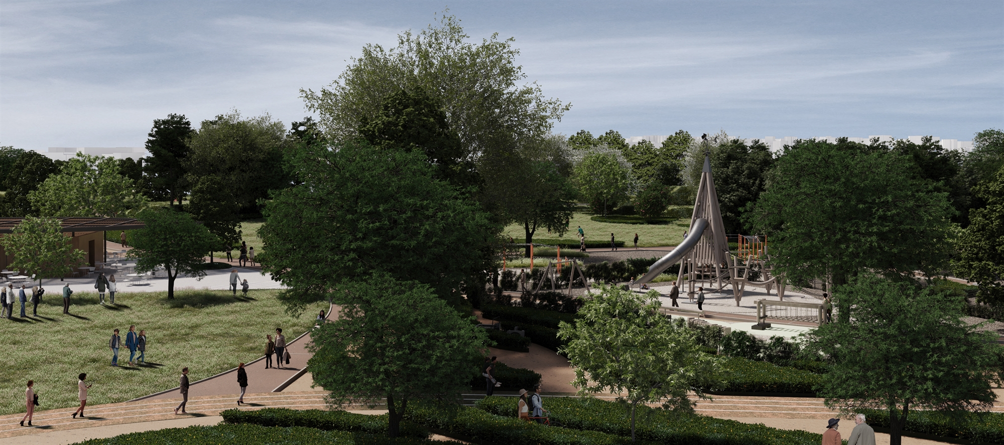Σύμφωνα με τη σχετική ανακοίνωση, οι κεντρικές πλατείες και τα πλατώματα που θα φιλοξενούν αναψυκτήρια θα καταλαμβάνουν ελάχιστο τμήμα του πάρκου, ενώ στην κατασκευή τους θα δοθεί έμφαση στη χρήση βιοκλιματικών και φιλικών στο περιβάλλον υλικών. Τα παραπάνω, σε συνδυασμό με την προβλεπόμενη αναβάθμιση των υποδομών (έργα οδοποιίας, κατασκευής δικτύων, πεζοδρόμια κ.ά.), αναμένεται να συμβάλουν στην ολιστική ανάπλαση της περιοχής του Ελαιώνα δημιουργώντας ένα αυθεντικό τοπίο, ανθεκτικό στις επιπτώσεις της κλιματικής κρίσης. Σύμφωνα με τον αντιδήμαρχο Αστικών και Κτιριακών Υποδομών και Σχεδίου Πόλεως Βασίλη Αξιώτη, «επεκτείνουμε την πόλη στην “ξεχασμένη” για χρόνια γειτονιά του Βοτανικού. Το νέο μητροπολιτικό πάρκο είναι η παρακαταθήκη μας για τις επόμενες γενιές της Αθήνας».