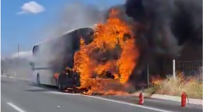 Μόλις ο οδηγός αντιλήφθηκε τι συνέβη ακινητοποίησε το όχημα, επιχειρώντας να σβήσει τη φωτιά με πυροσβεστήρες, ενώ έντρομοι οι περίπου 20 επιβάτες αποβιβάστηκαν.