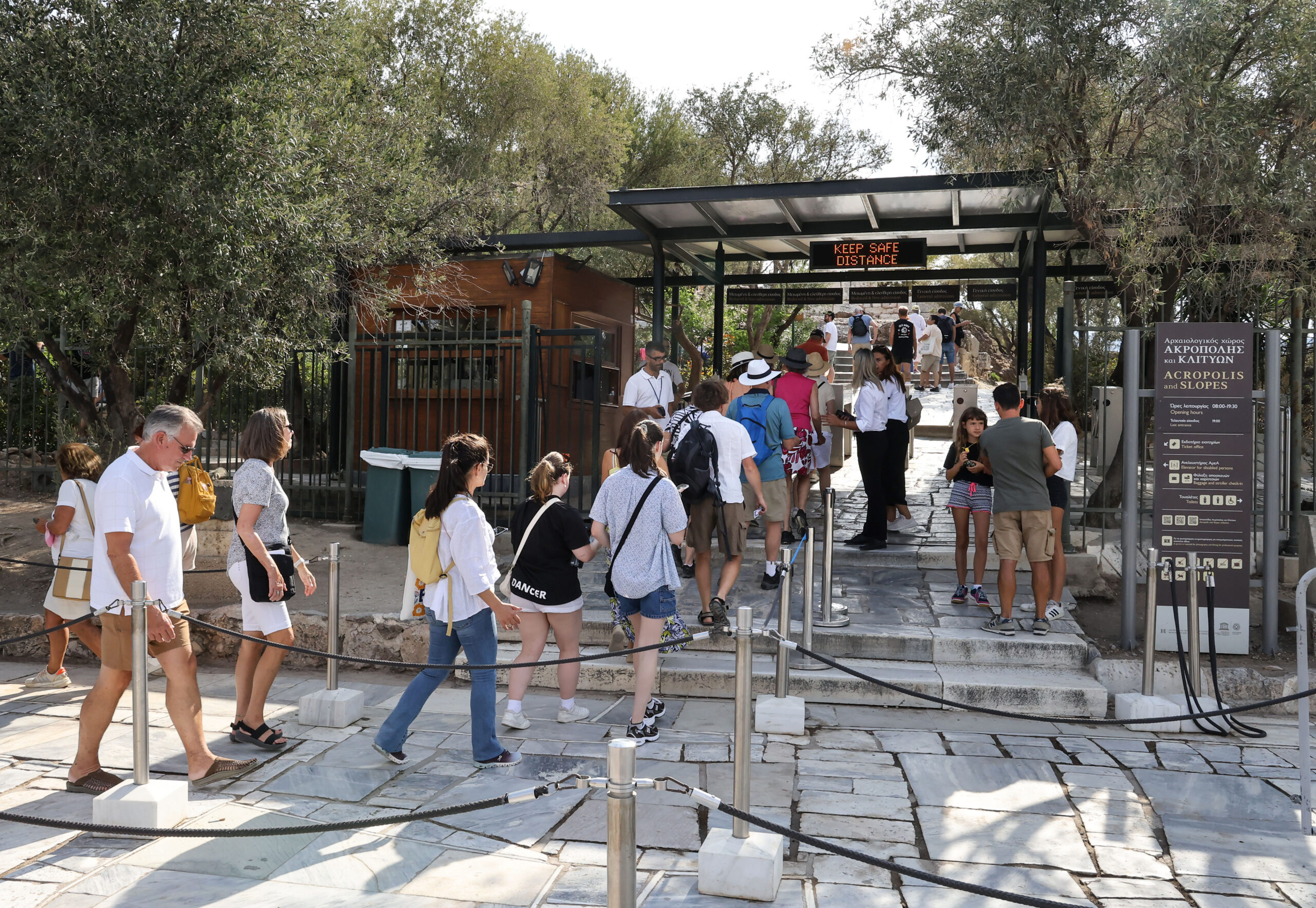 Στην κεντρική είσοδο της Ακρόπολης οι ουρές ήταν ελάχιστα μεγαλύτερες. Πολλά από τα μεγάλα οργανωμένα γκρουπ είχαν έρθει νωρίς και είχαν ήδη αποχωρήσει, ενώ οι περισσότεροι επισκέπτες περίμεναν πλέον να αγοράσουν εισιτήρια από τα εκδοτήρια. Εκεί ήταν που άκουγαν, όχι πάντα με ικανοποίηση, για την ύπαρξη των χρονοθυρίδων. Όπως η 35χρονη Αϊγκιούν από την Τουρκία, που λίγο πριν τις 10.30 π.μ. βρήκε εισιτήριο για τις 12 το μεσημέρι: «Θα προτιμούσα να μπω κατευθείαν, αλλά κατανοώ γιατί το κάνουν», έλεγε στην «Κ». Τη στάση της δεν φαίνονταν να συμμερίζονται η 60χρονη Λιν και η 41χρονη Τζέμα από την Αγγλία, που περίμεναν υπομονετικά σε μια σκιά, έχοντας επίσης στα χέρια τους ένα εισιτήριο που έγραφε «12:00-13:00». Ήλπιζαν να μπουν νωρίτερα για να αποφύγουν τη ζέστη, έμαθαν όμως για τις ζώνες επισκεψιμότητας μόλις έφτασαν στον γκισέ των εισιτηρίων. «Καταλαβαίνουμε γιατί εφαρμόζεται το μέτρο», παρατηρούσαν, «αλλά δεν υπάρχει πολλή πληροφόρηση, μια πινακίδα για παράδειγμα ή κάποιος χάρτης που να σε κατευθύνει και κανείς δεν είναι ιδιαίτερα εξυπηρετικός».