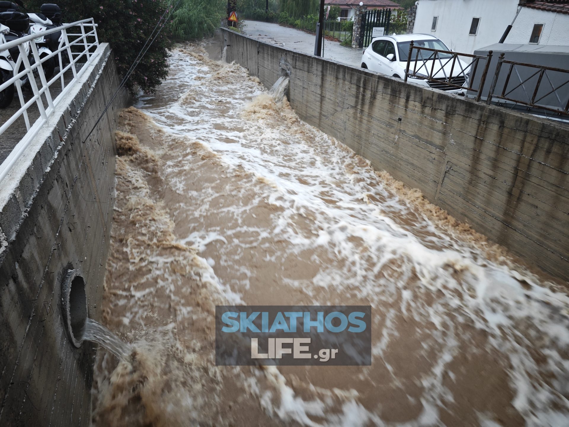Και το νησί της Σκιάθου σαρώνει η κακοκαιρία «Daniel», με πολλούς δρόμους του νησιού να έχουν μετατραπεί σε ποτάμια. Ταυτόχρονα, λίγο πριν από τη 1.00 το μεσημέρι, αποφασίστηκε από την ΕΛ.ΑΣ. η απαγόρευση κυκλοφορίας στο νησί.