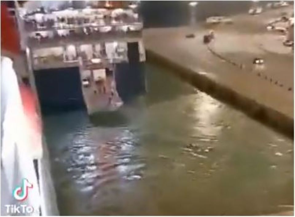 Το νέο αυτό βίντεο καταγράφεται από επιβάτη άλλου πλοίου, ενώ το Blue Horizon έχει μόλις αναχωρήσει.