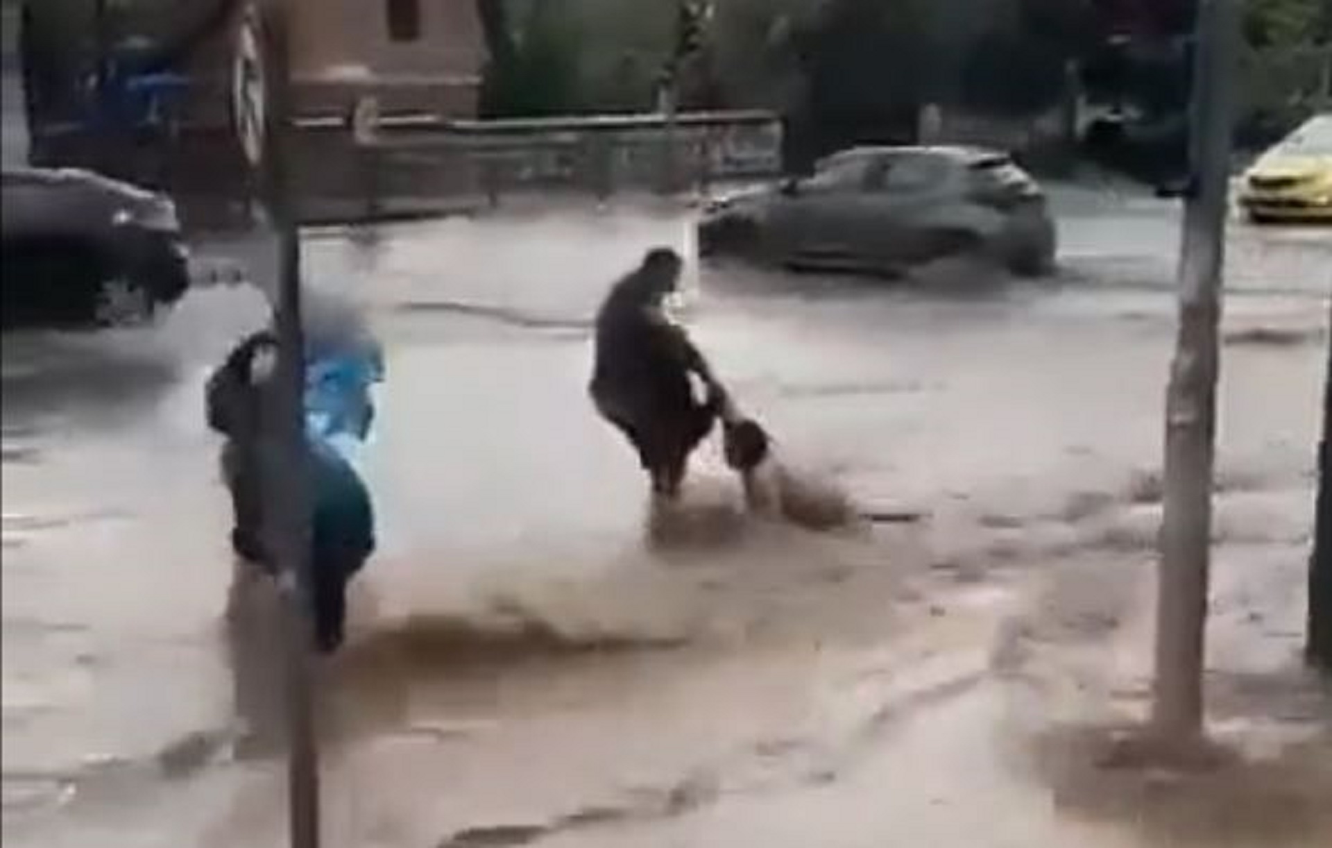 Πρωτόγνωρες σκηνές σημειώθηκαν στη λεωφόρο Βασιλίσσης Σοφίας, όπου πολίτες παρασύρθηκαν από τα ορμητικά νερά.